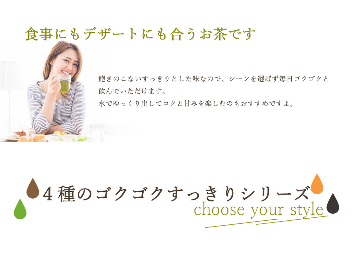 ・急須・マグカップ: ティーバッグ1つに対して、お湯を約200ml注いで2分程度待ってからお飲みください。