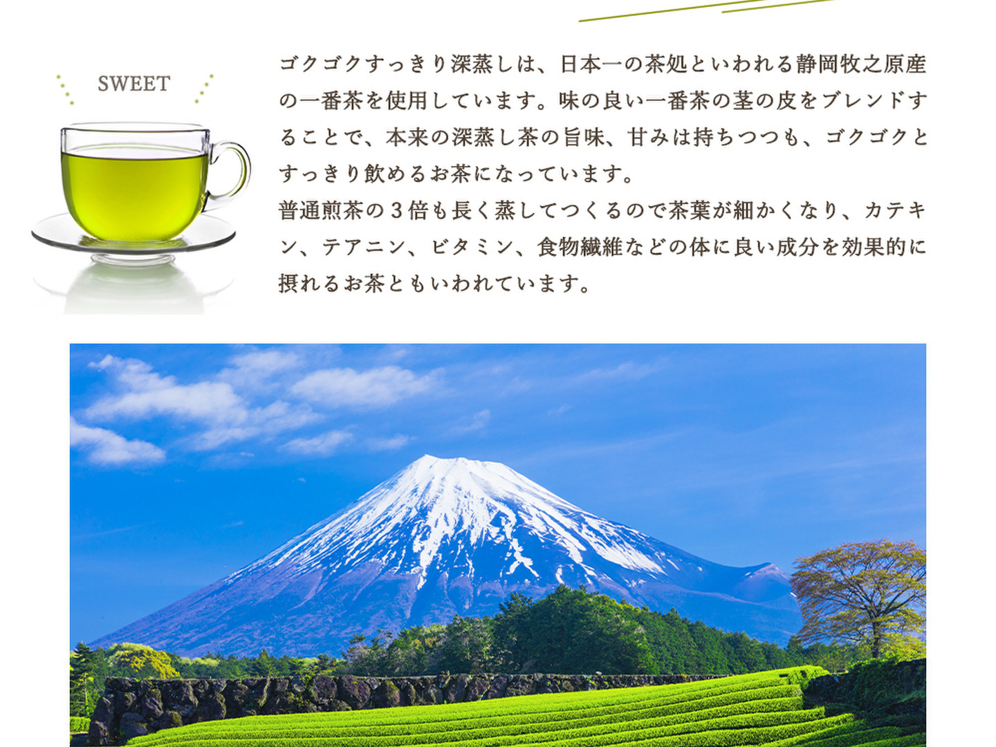 日本を代表するお茶処、静岡県牧之原市のお茶農家兼製茶工場より、深蒸し茶を直送します!