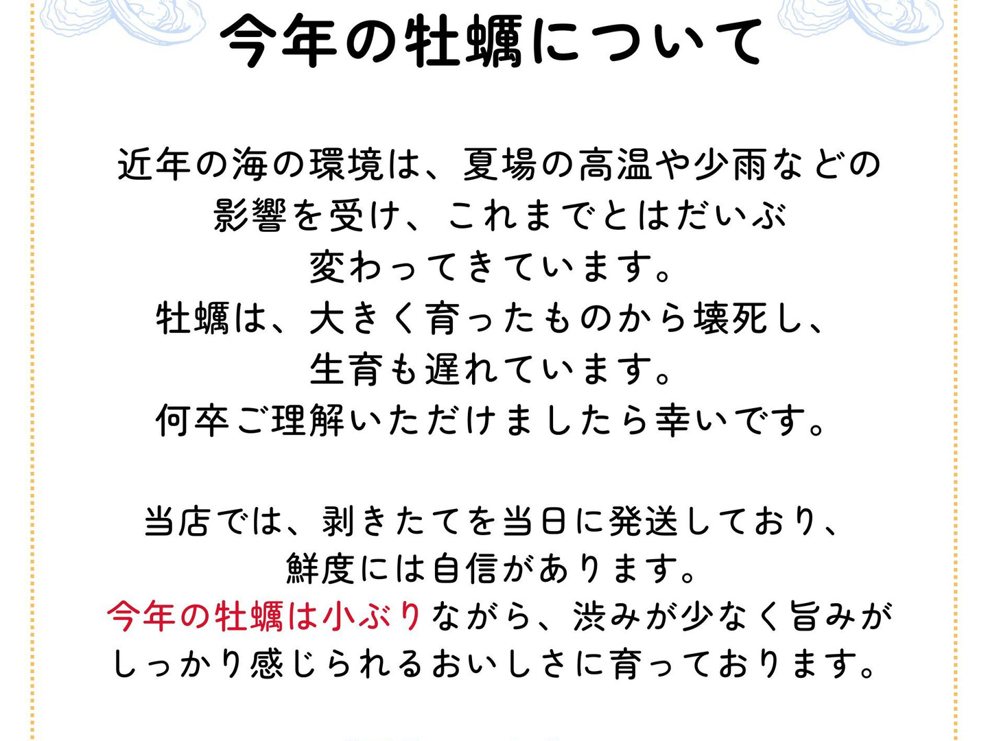 状態の良い牡蠣のみを順次発送しております。