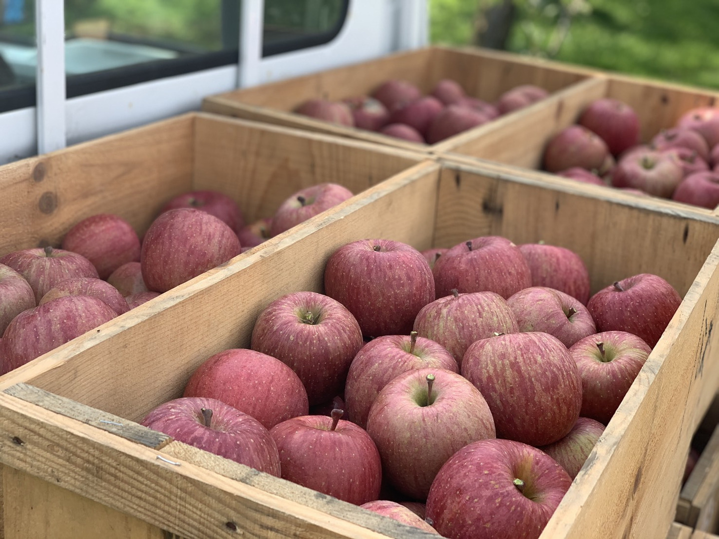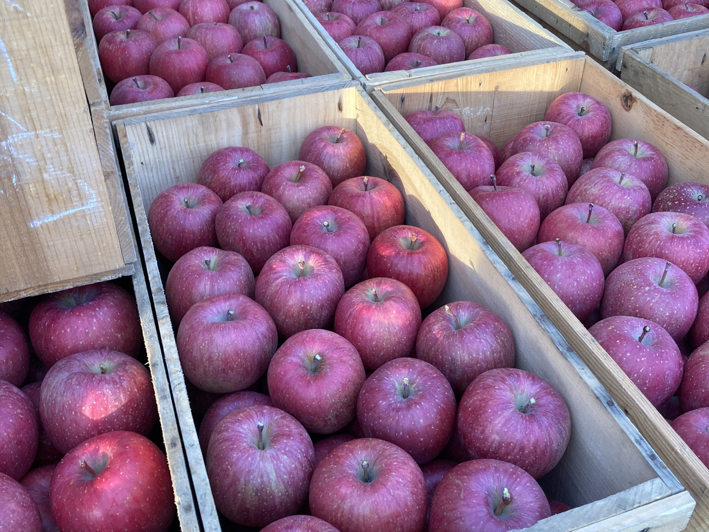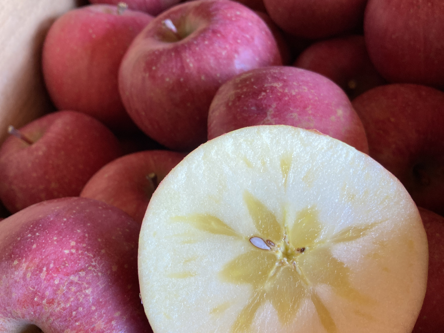 ☆今回ご紹介する「サンふじ」は無袋栽培のりんごで、太陽光をたくさん浴びるため、一般的に有袋栽培のものよりも糖度が高く蜜が入りやすいと言われています。無袋のりんごは販売時に「サン(太陽の“sun”)」が品種名の前につけられ、「サンふじ」となっています。