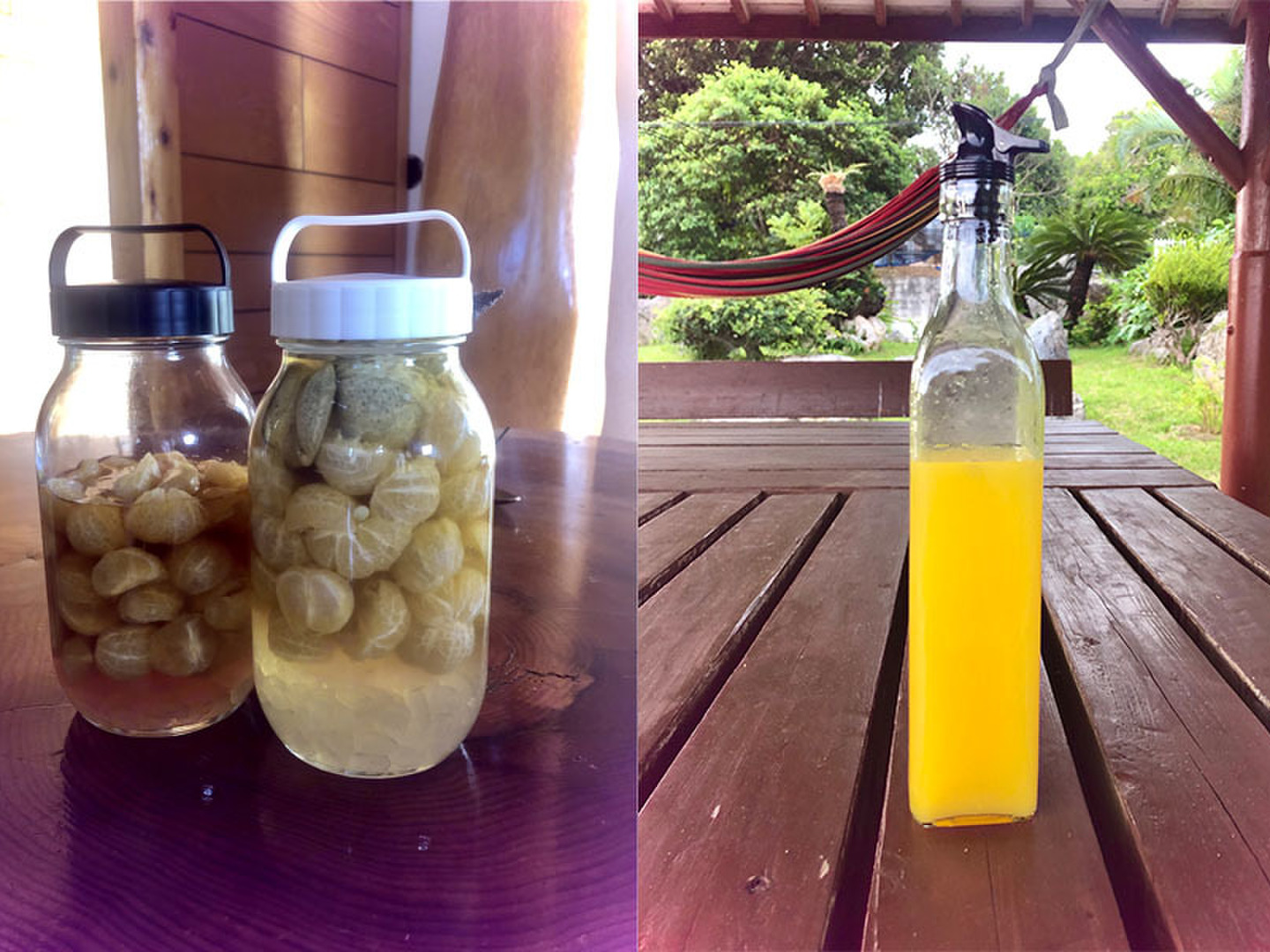 例えば、写真5枚目左側のように2リットル分のシークワーサー酢やシークワーサーリキュールをお作りいただけます。