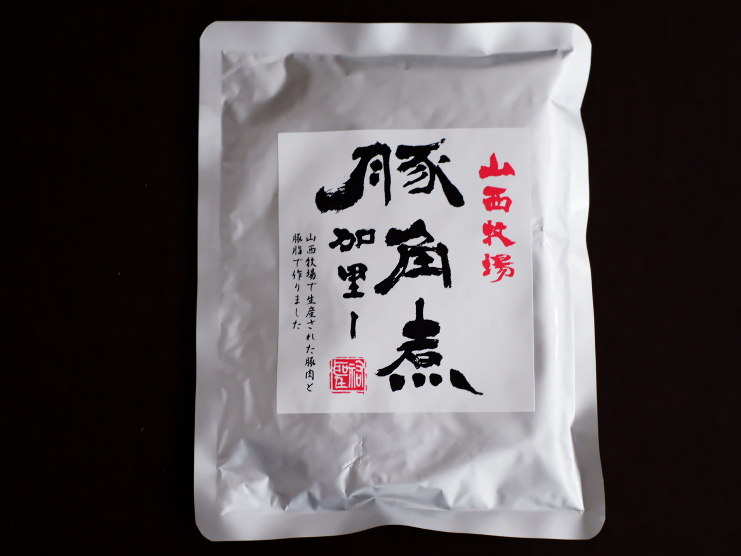 銘柄豚 山西牧場 の豚肉をふんだんに使用して作った、豚角煮という名前の通り角切りお肉ゴロゴロのポークカレーです。