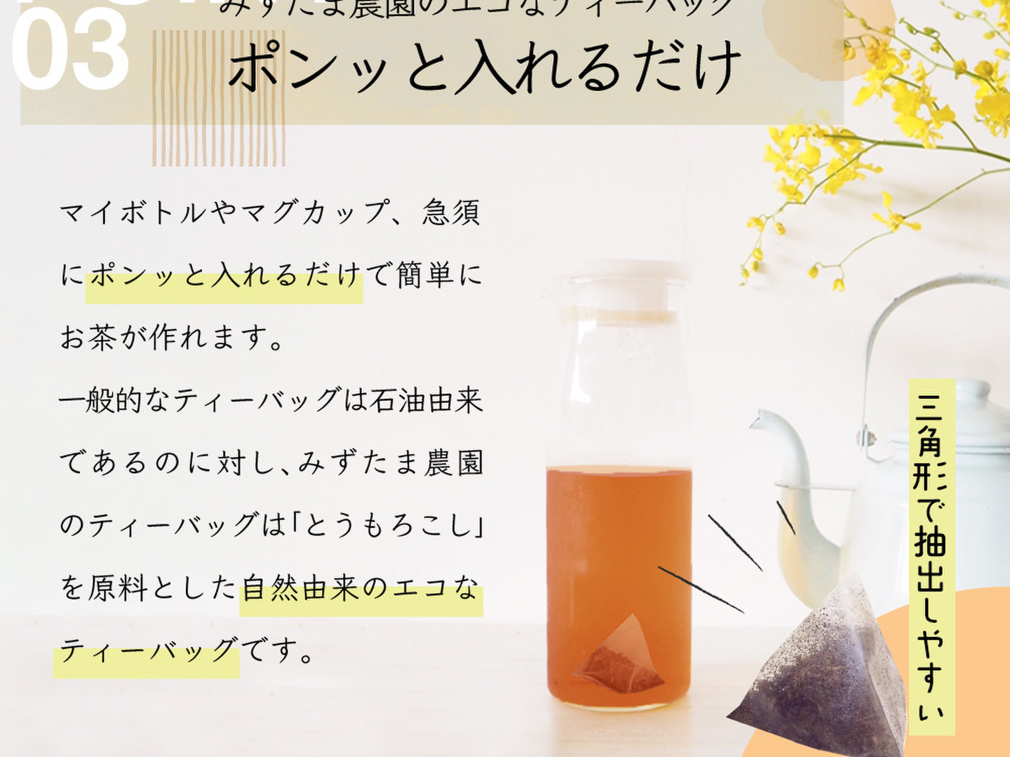 - ティーバッグだからマイボトルで持ち歩き!