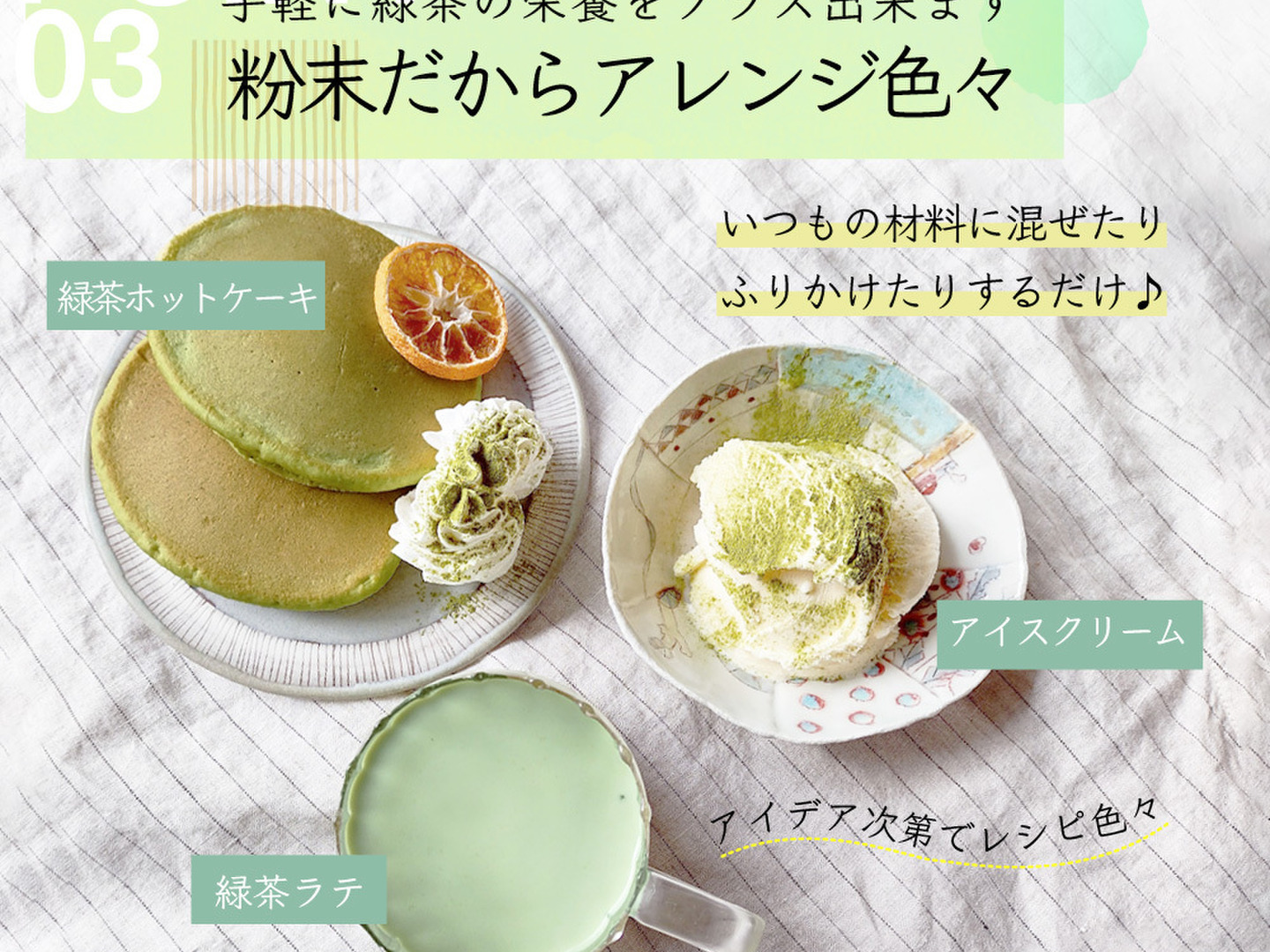 さらに抽出して淹れる煎茶では摂取することのできない水不溶性成分を丸ごと摂取することができます。
