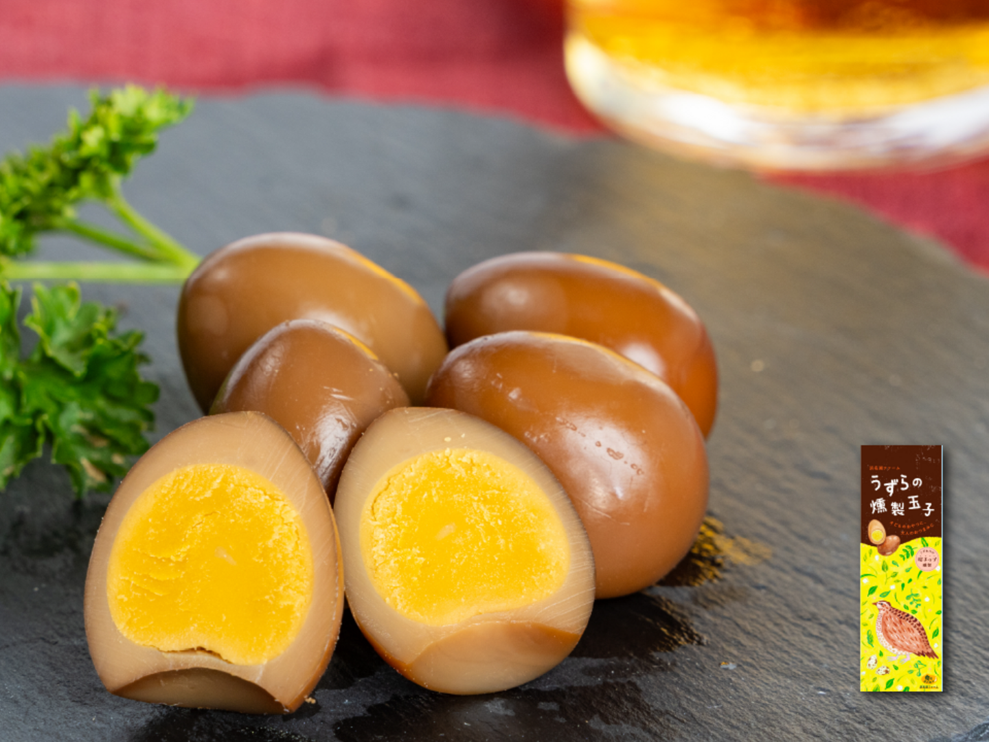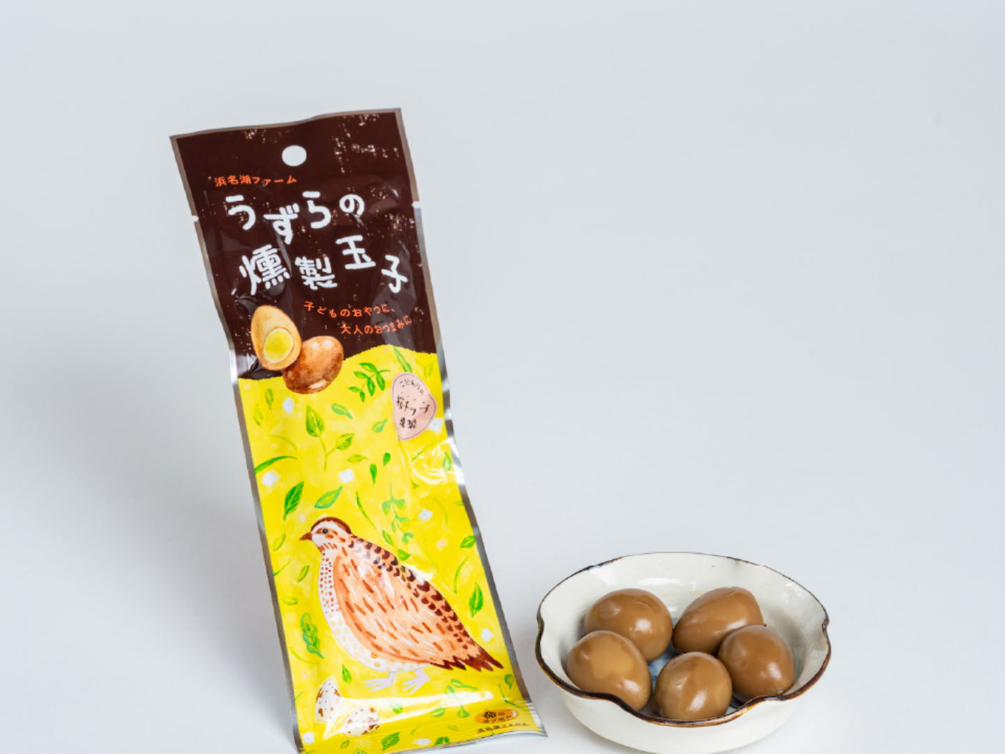 「材料」と「製造方法」にこだわった、浜名湖ファーム自慢のうずら卵の燻製です。