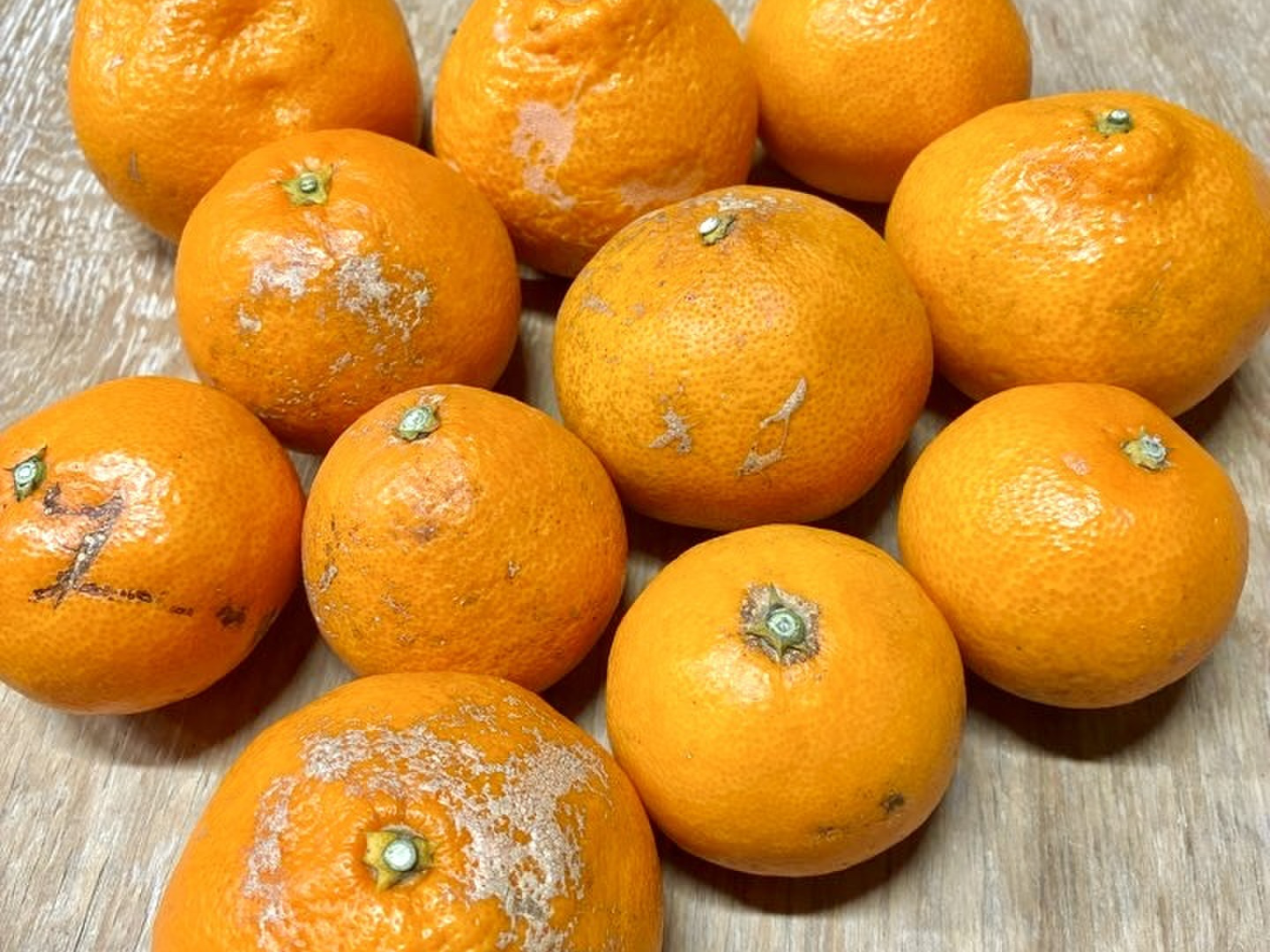 *果実の白い付着物は浮き皮予防の為の