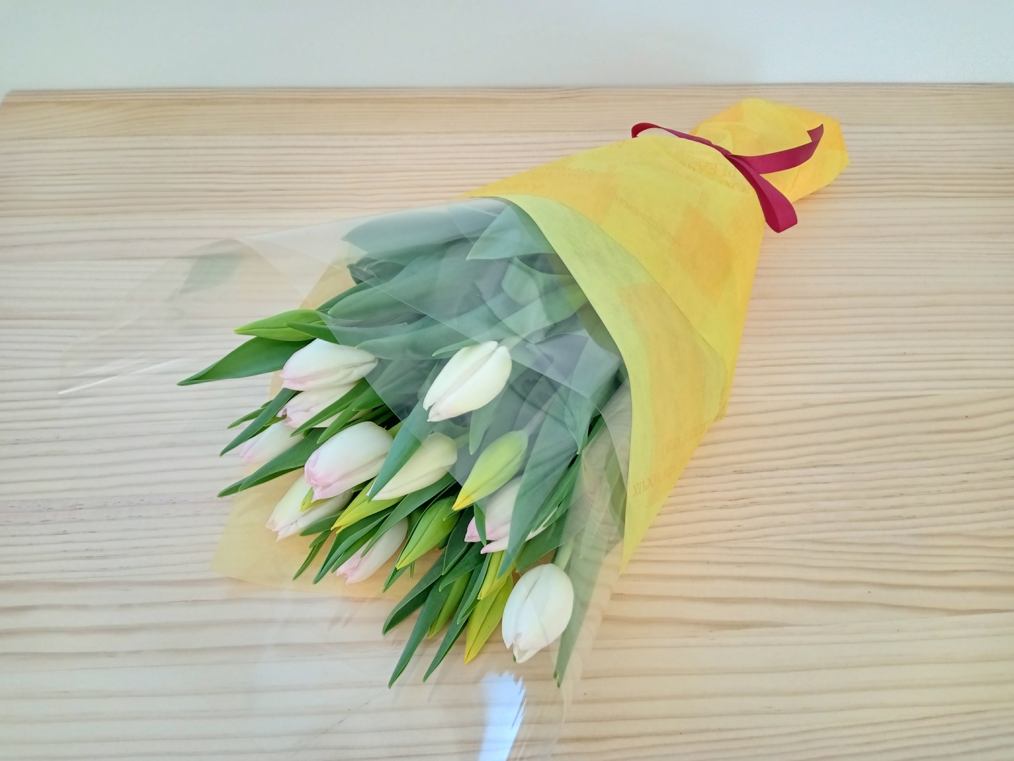 【4/5まで販売】ラッピングチューリップ 20本束(黄桃ミックス) ※北海道・沖縄県配送不可※