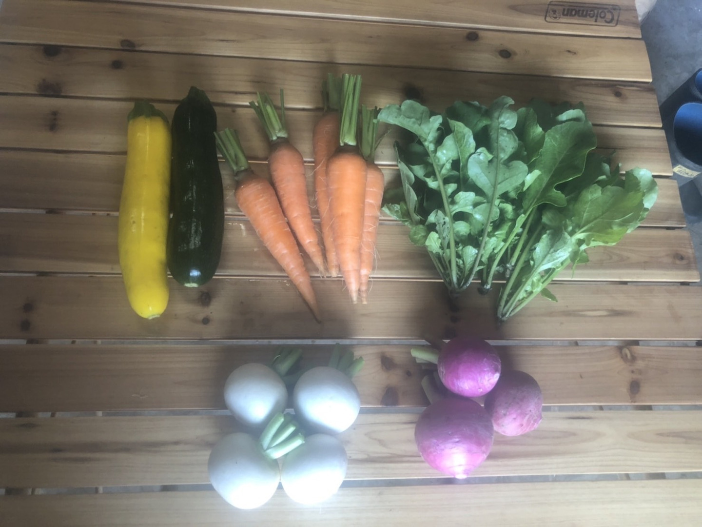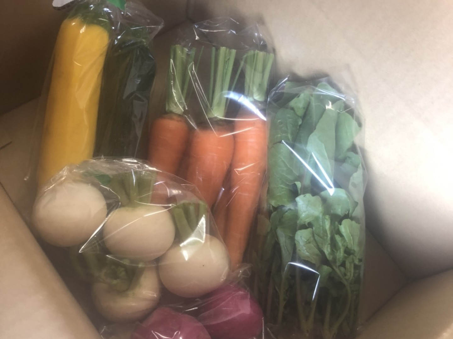 今週のおすすめ野菜セット 5品 (白・赤かぶ、人参、さつまいも、春菊) 春菊かルッコラか選べます。