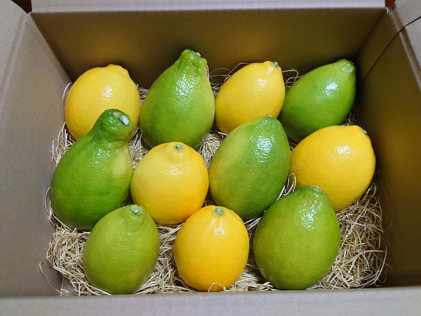 画像一枚目のようにイエローレモン、イエローグリーンレモンの混在になります。日数の経過と共に次第に黄色のものが多くなります。