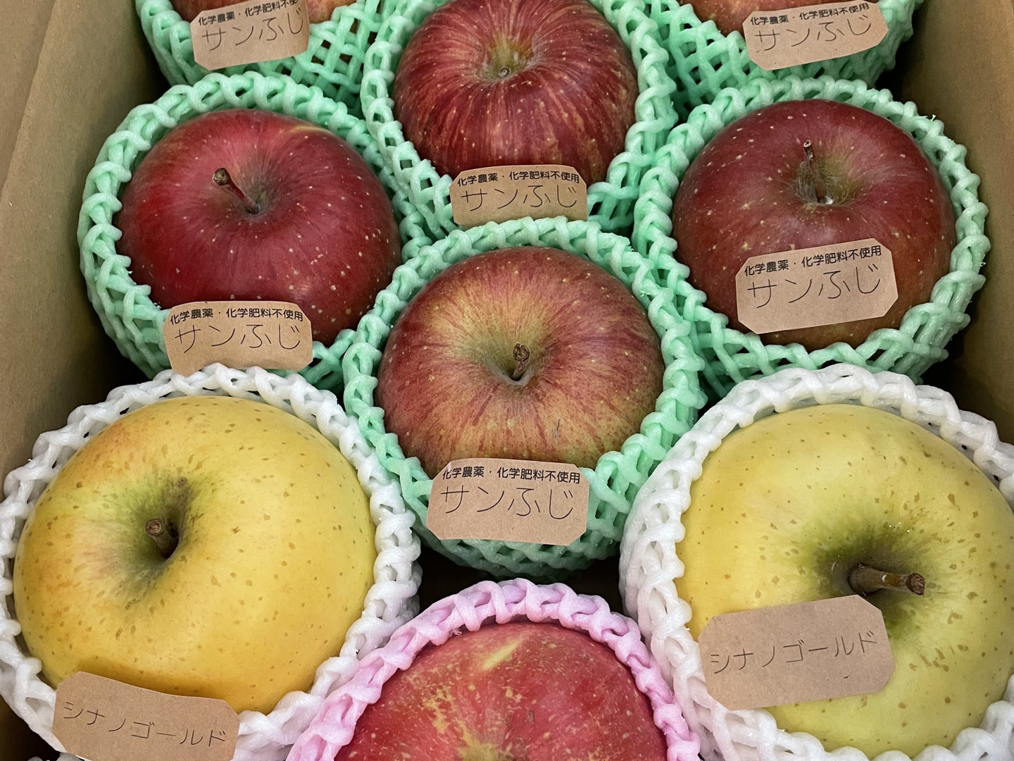 農薬不使用りんご2〜3個 & 特別栽培りんご品種(1〜3種類)8〜9個