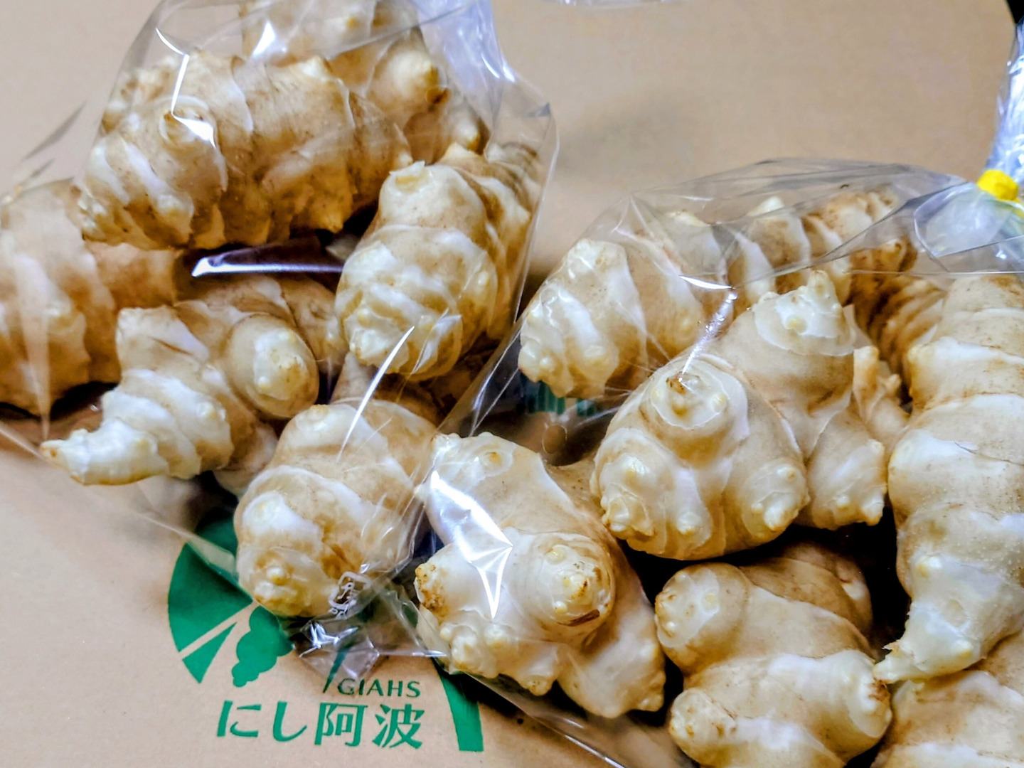 菊芋は収穫して直ぐに洗浄し土を落としたものを袋詰めしています。袋のまま野菜室等の冷暗所で保存してください。
