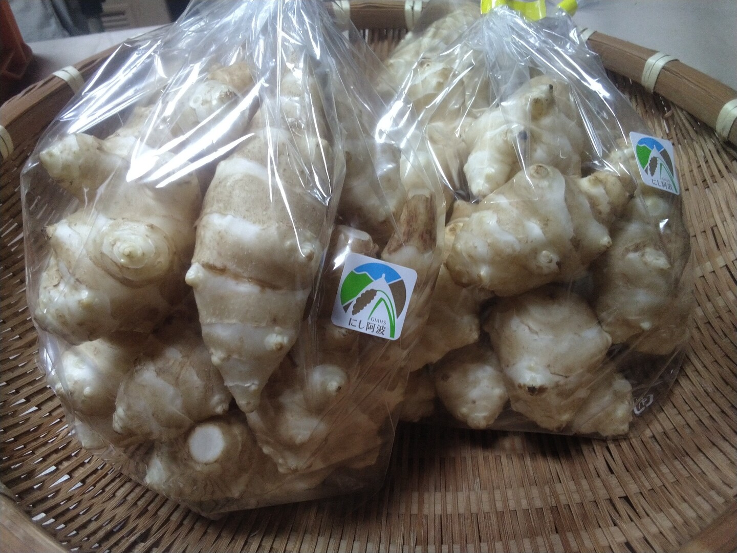 菊芋は収穫して直ぐに洗浄し土を落としたものを袋詰めしています。袋のまま野菜室等の冷暗所で保存してください。