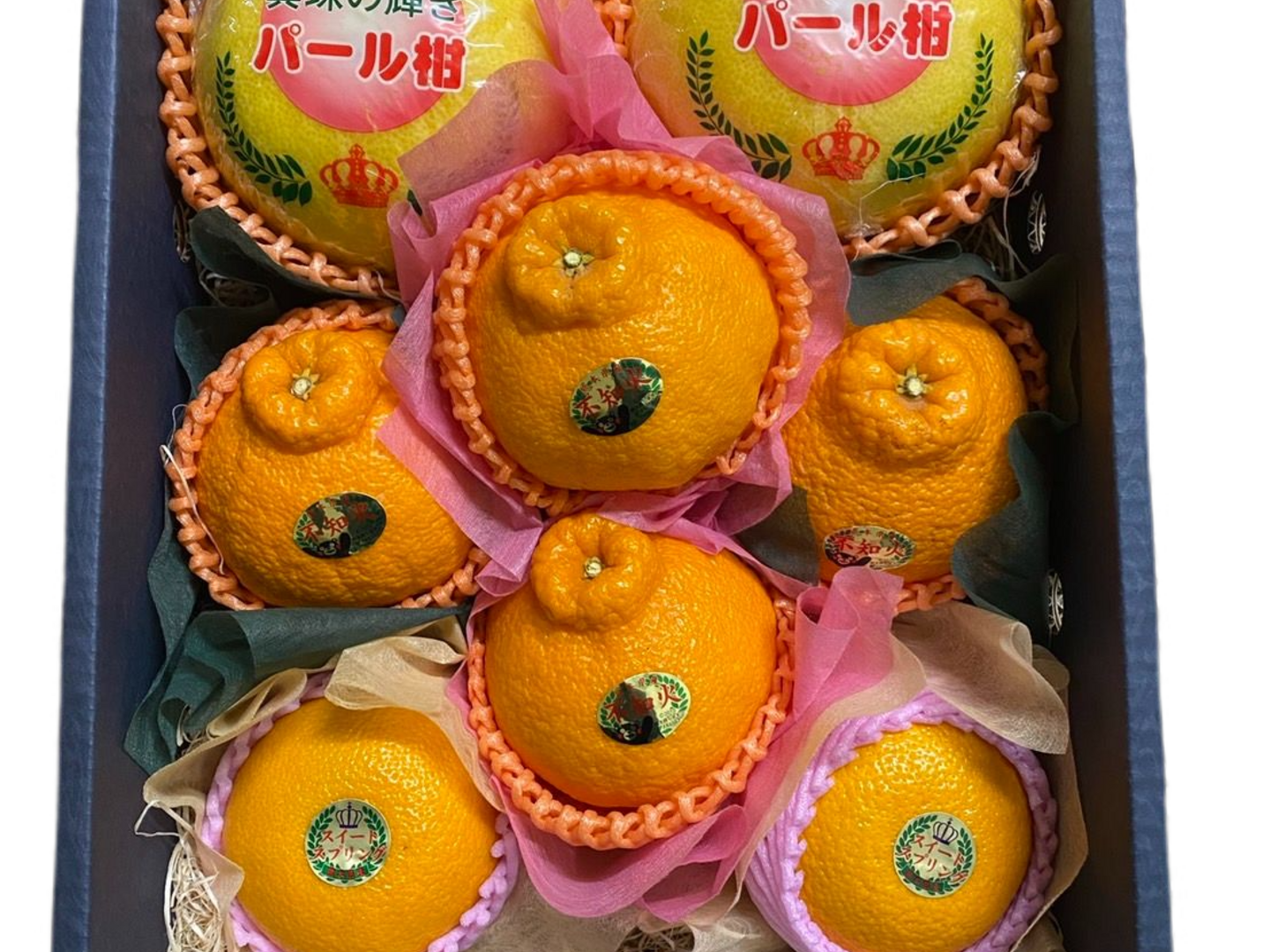 選り抜きの柑橘に装飾を加え、箱詰めしたものです。