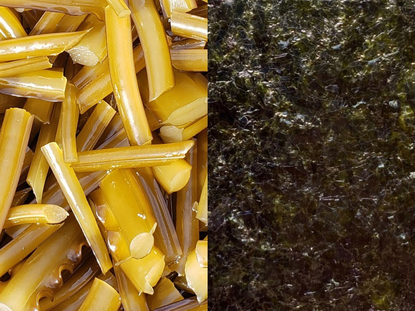 【末吉丸】の下津井茎わかめと【南條海苔】の鷲羽のりの共同出品です。