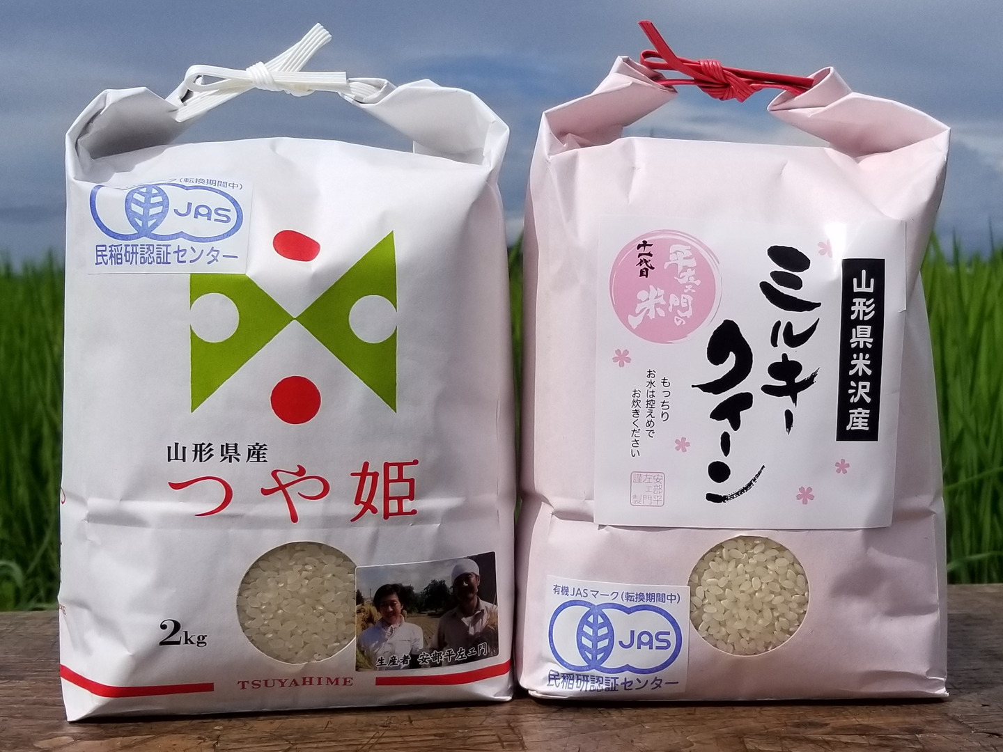 【令和6年】 JAS有機栽培セットつや姫&ミルキークイーン各白米2kg1袋