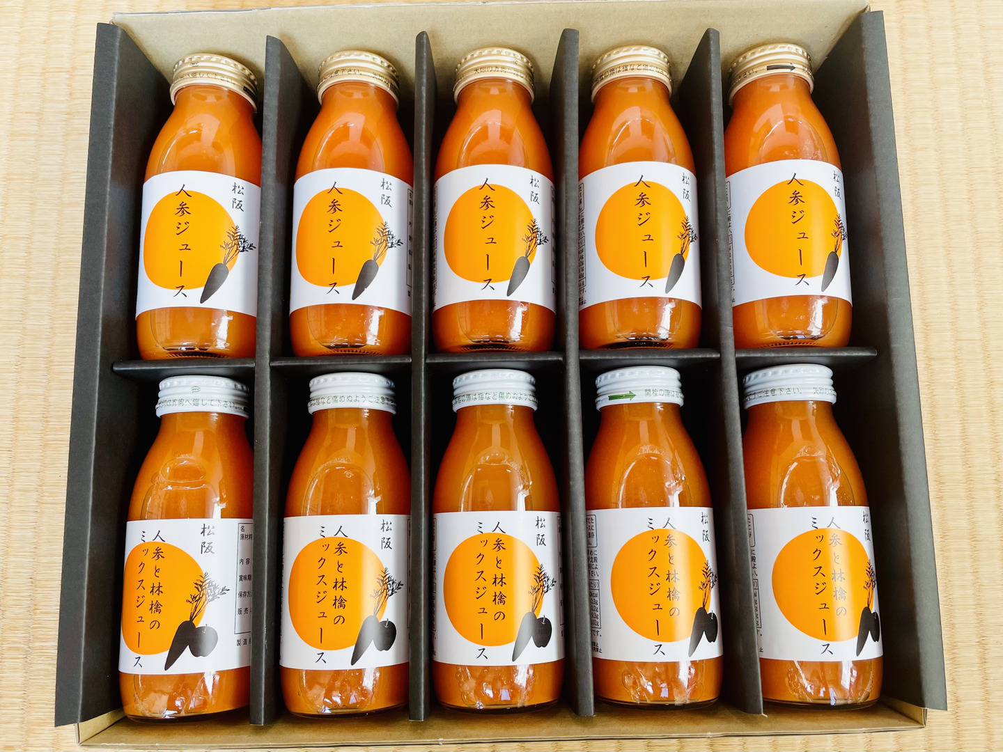 松阪こだわり人参ジュース&ミックスジュース 200ml[10本セット]【原材料】人参ジュース にんじん(三重県松阪産)、レモン(国産)、梅エキス(国内製造) ミックスジュース にんじん(三重県松阪産)、果実(りんご、レモン(国産))、梅エキス(国内製造)