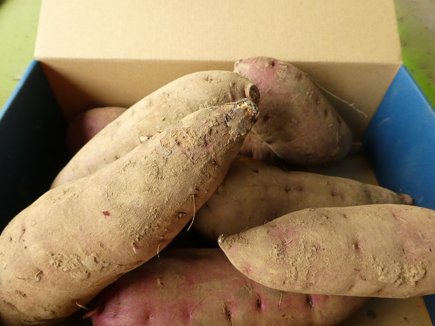 届いた段ボールを開封して洗わず、土付きのままで風通しを良くして頂ければ、段ボール箱のままキッチン等で保存できます。