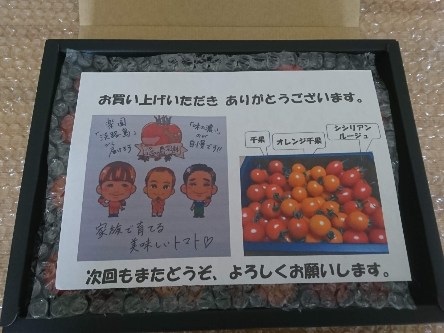 各便、上記から必ず3種類以上のトマトを組み合わせて詰め合わせます。