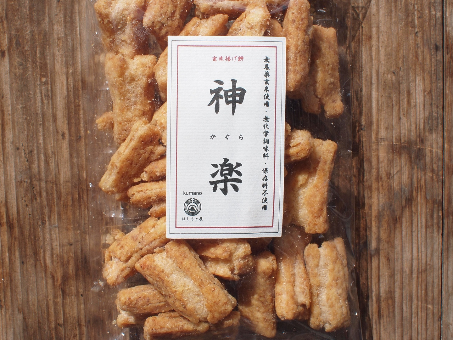 玄米揚げ餅(おかき)「神楽 かぐら」 100g×2袋 農薬不使用もち米使用