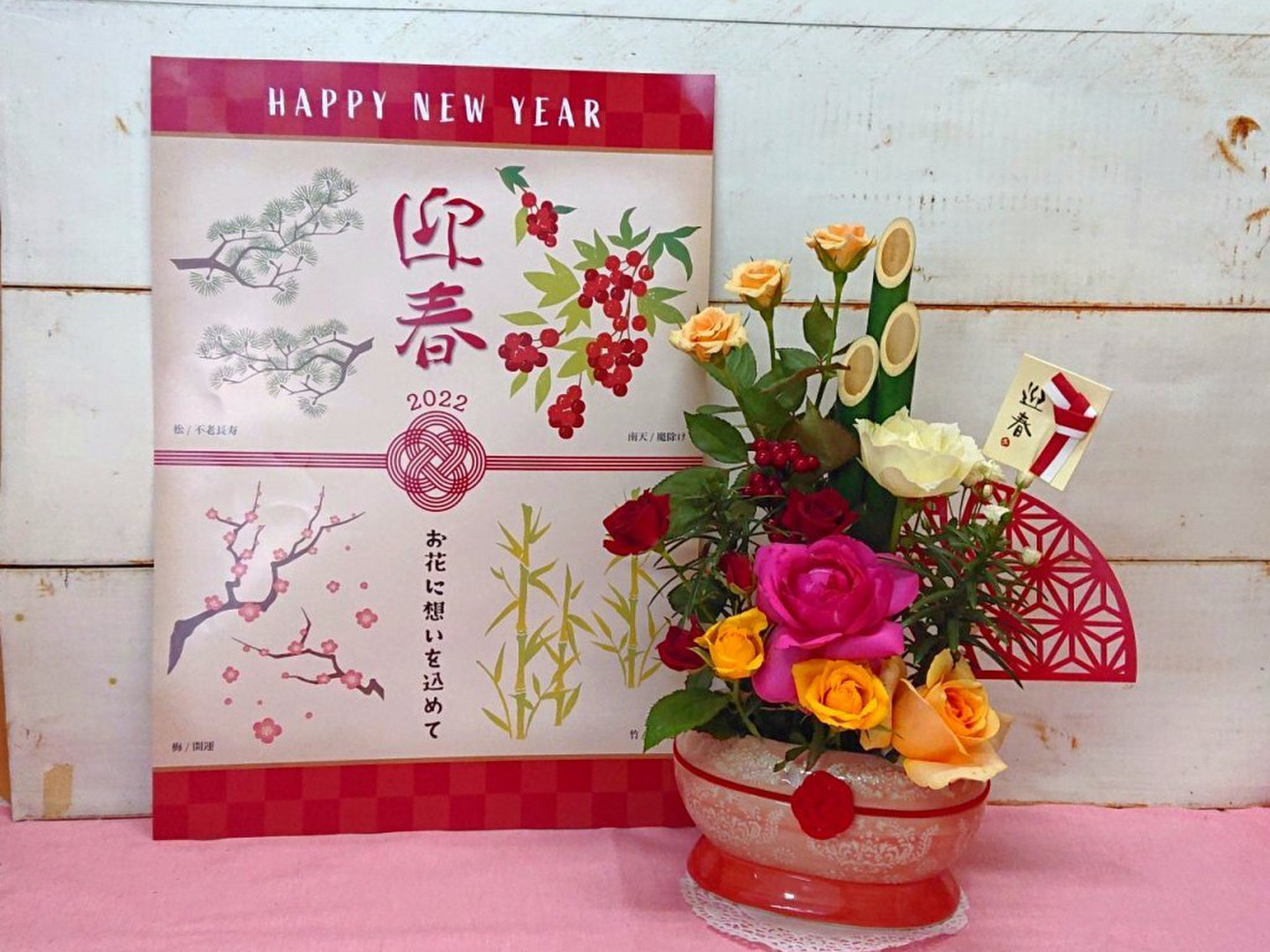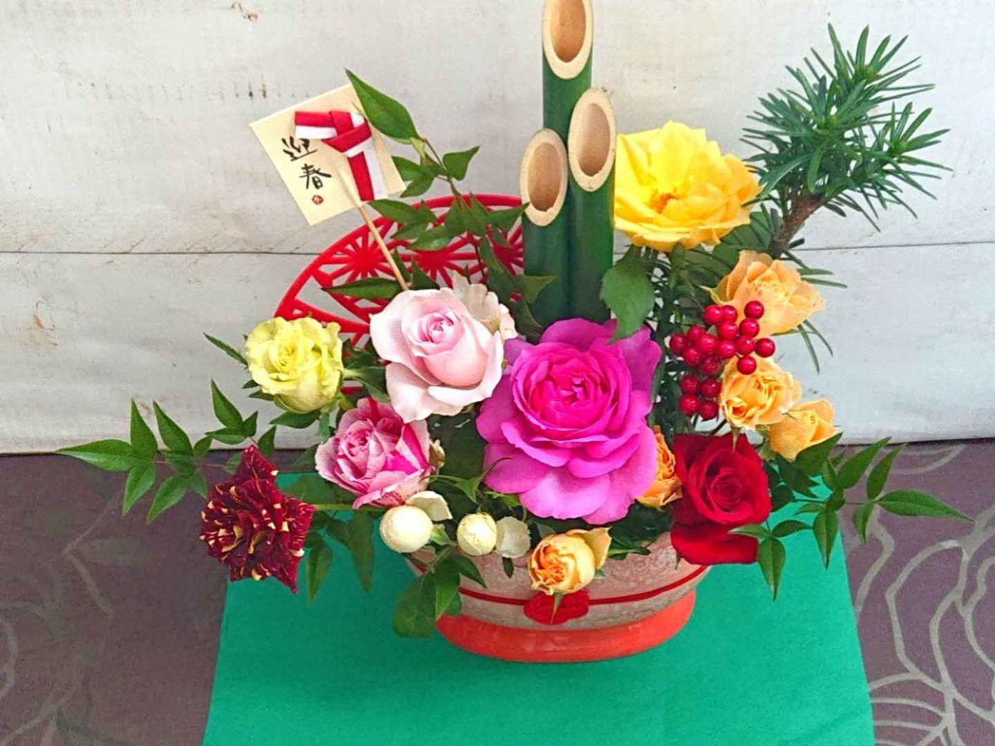 【正月アレンジ】薔薇だけの迎春ポットアレンジメント