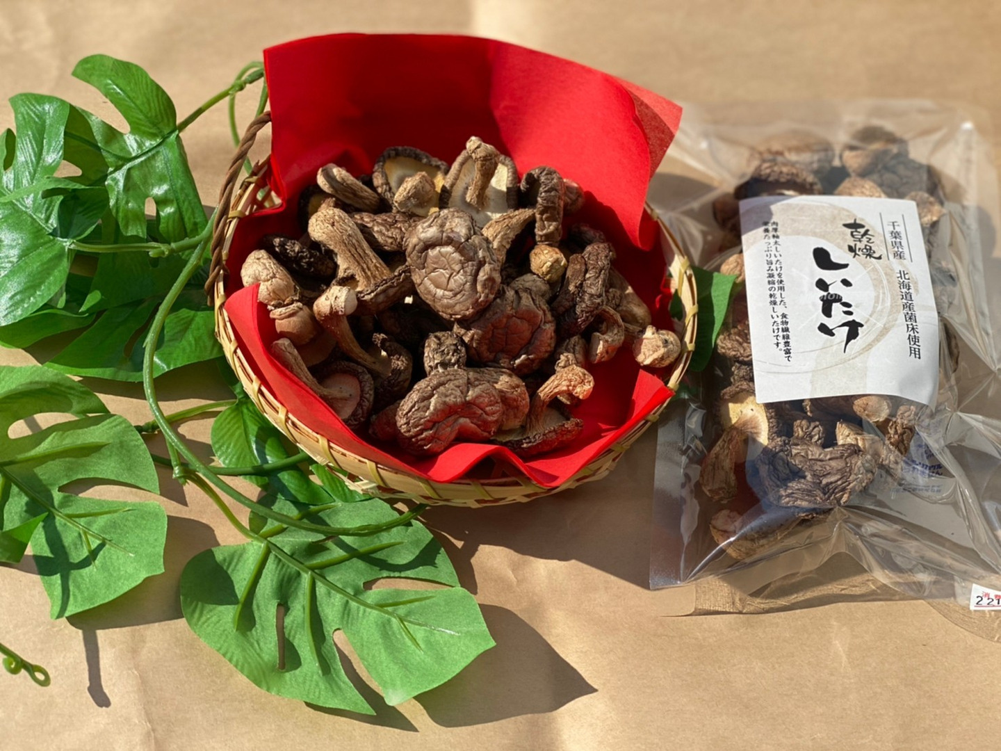 肉厚なかさと軸太が特徴の北海道産菌床を使用した生しいたけを丸ごと乾燥させました。