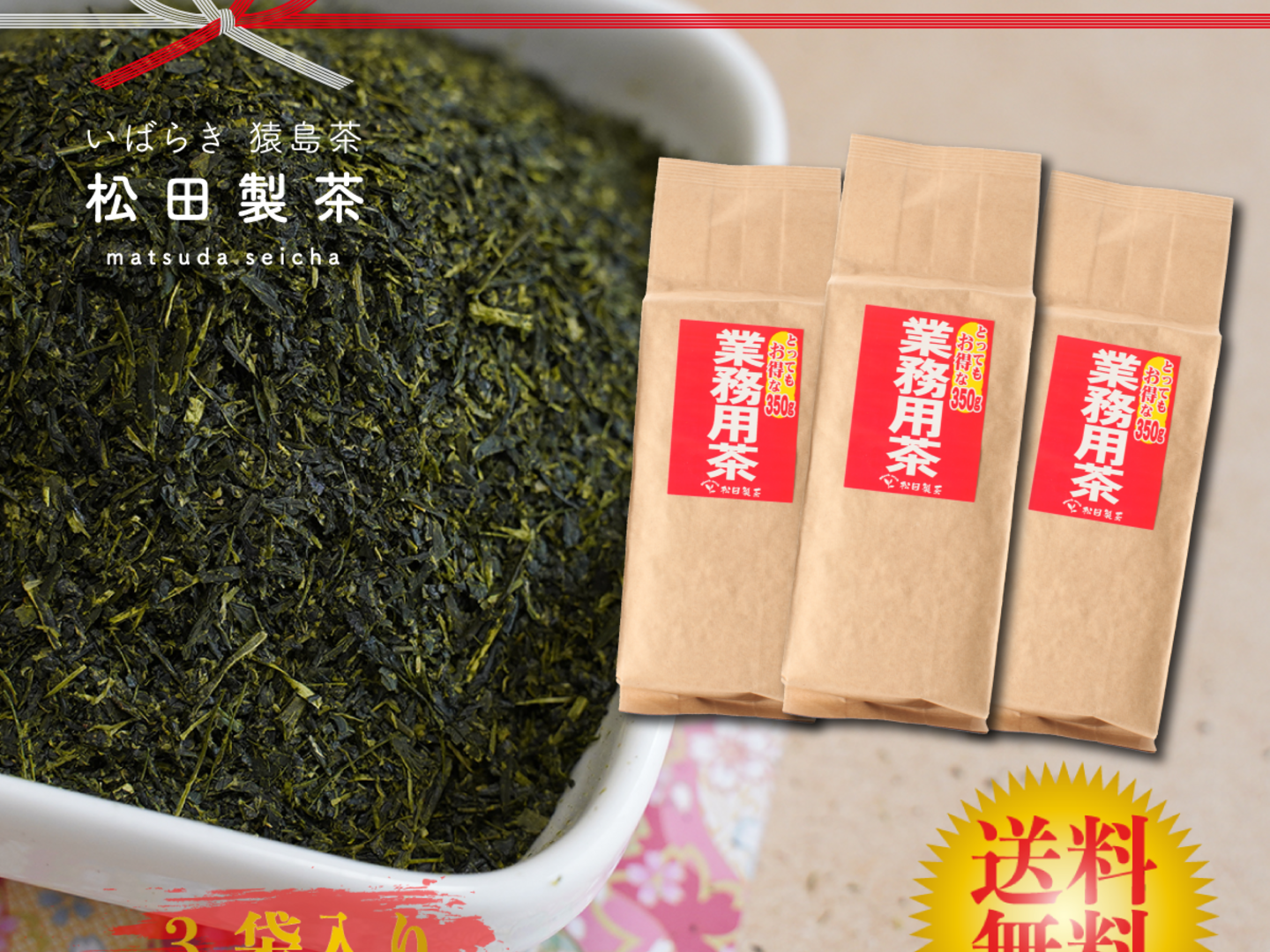 【たっぷり350g】猿島茶 業務用茶 350g×3袋セット お茶 緑茶 松田製茶