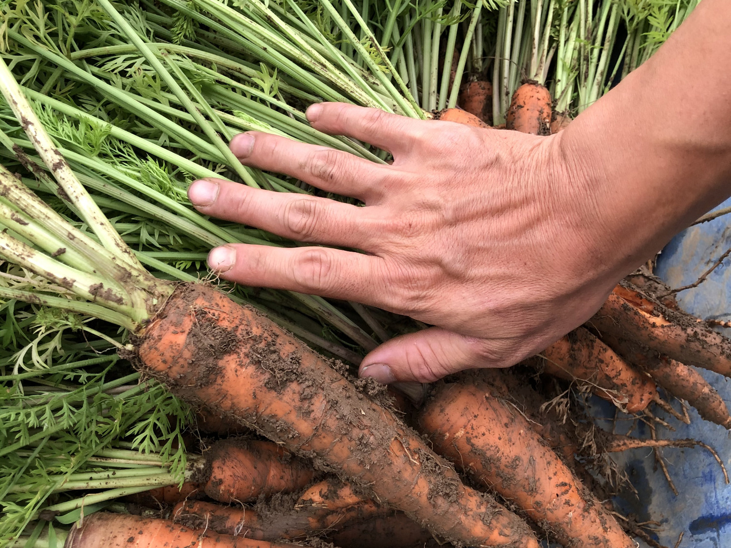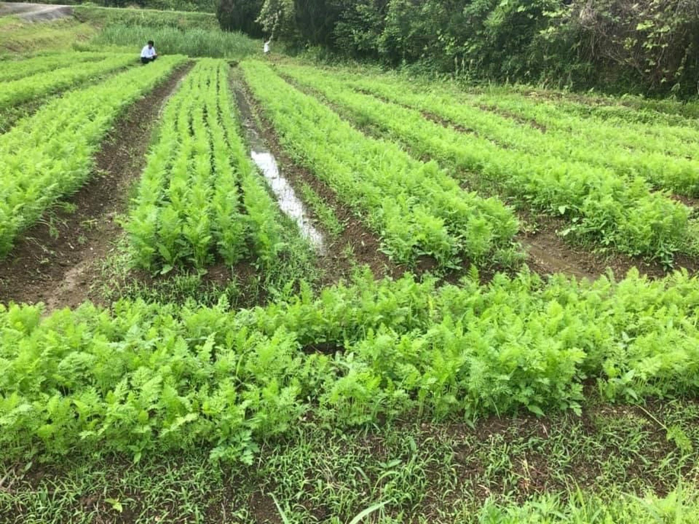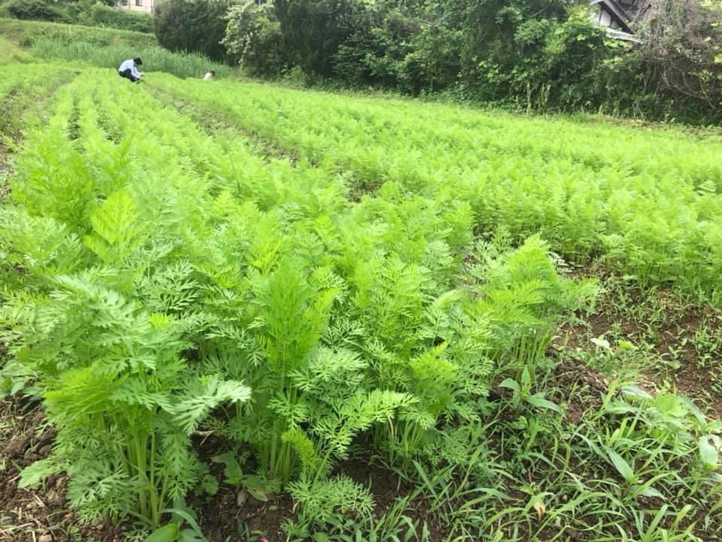 トラクターを使用し、たてた畝にタネを蒔き、丁寧に手除草 間引きをして栽培したにんじんです。