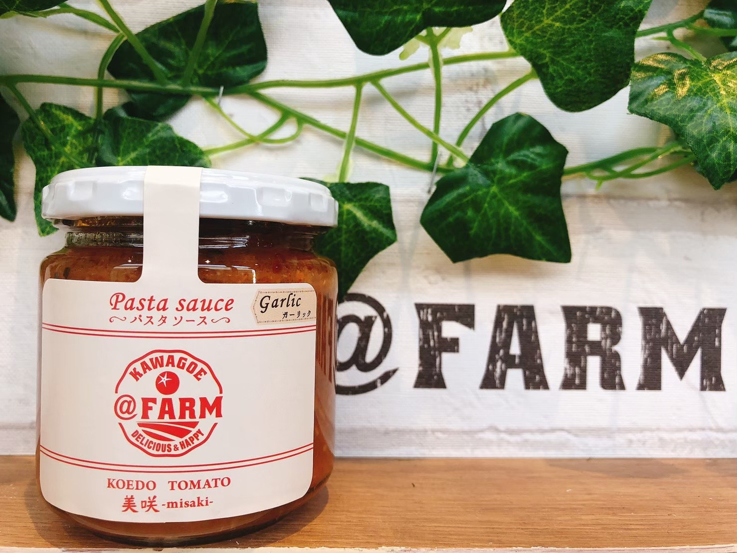 KOEDO TOMATO~美咲~を100%使用したパスタソース。不動の1番人気のガーリック&トマトソース!これは旨い!ガツンと食欲をそそる一品。茹でたパスタに和えるのはもちろん、お肉料理にも使えるユーティリティープレーヤー!これでみ~んな大・満・足!