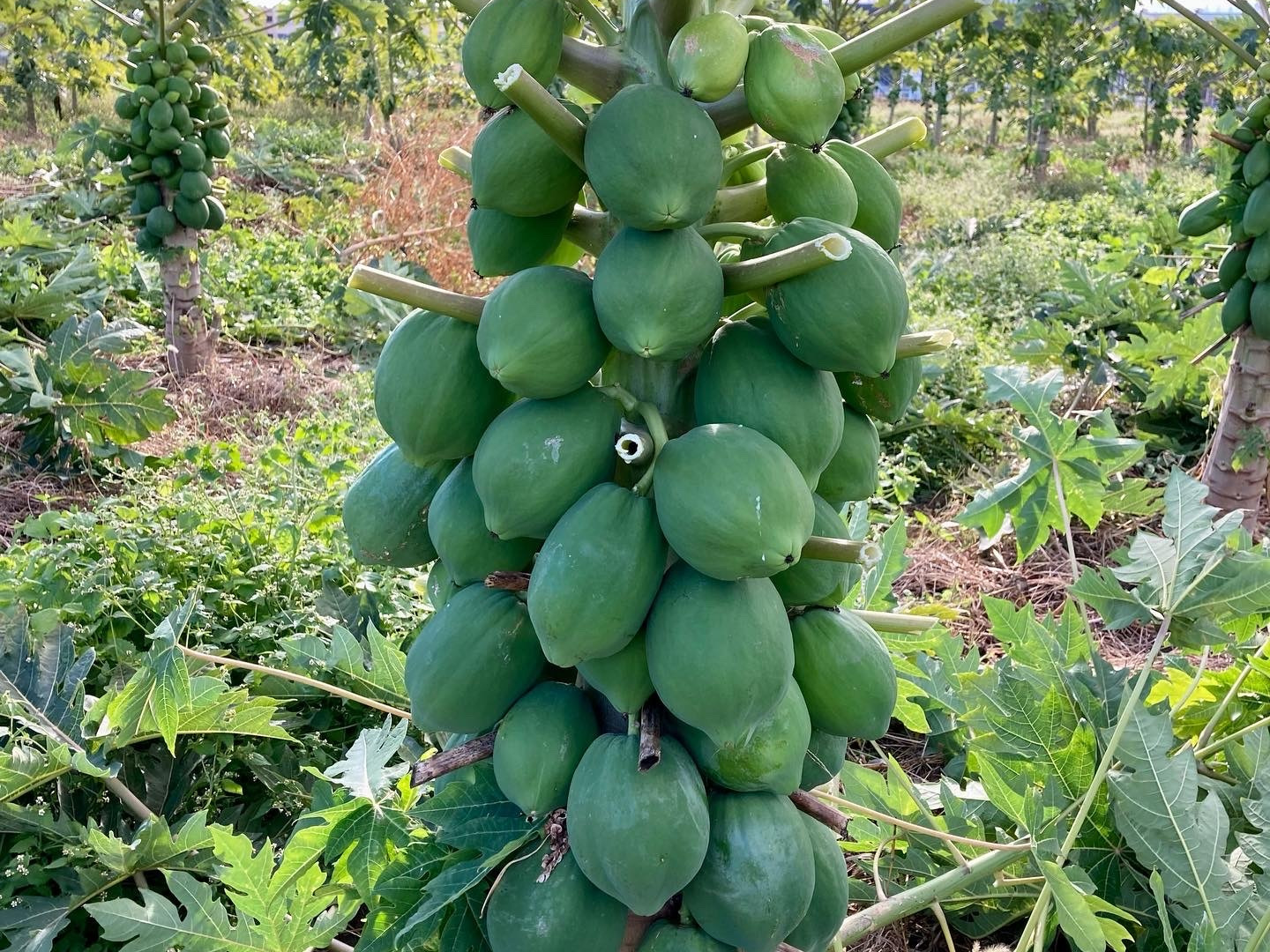 青パパイヤは一般的な黄色いパパイヤを完熟前に収穫したものになります。