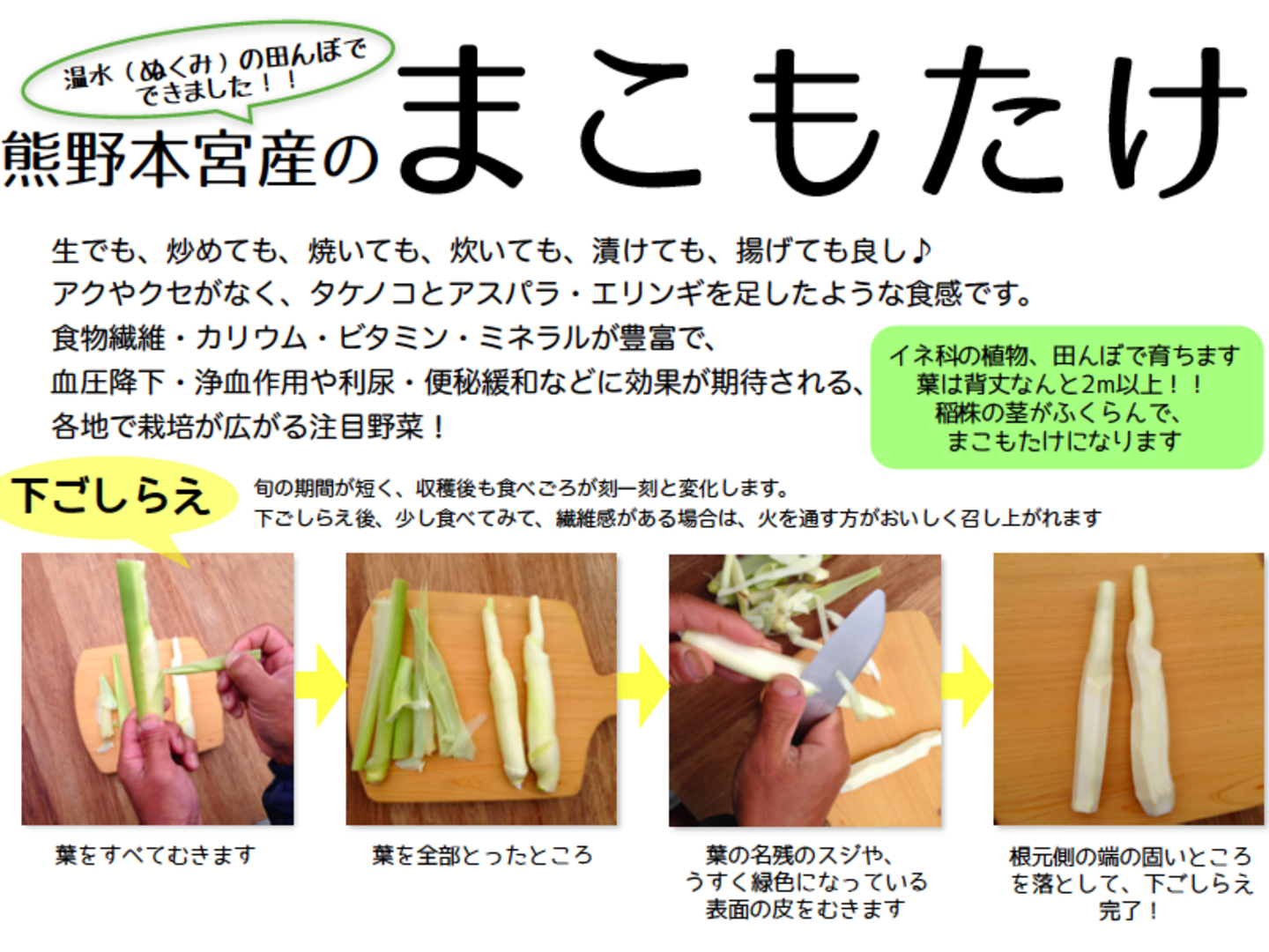葦やガマと同じく水辺でその水質浄化に貢献する「まこも」。