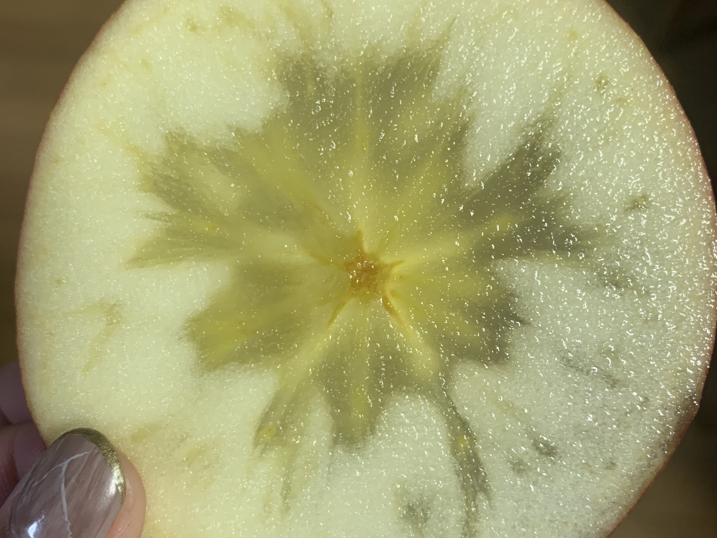 取り除いていただけますと、美味しくたべられますが、何個もそのような現象の起こるリンゴがございましたら、すぐにご連絡ください。
