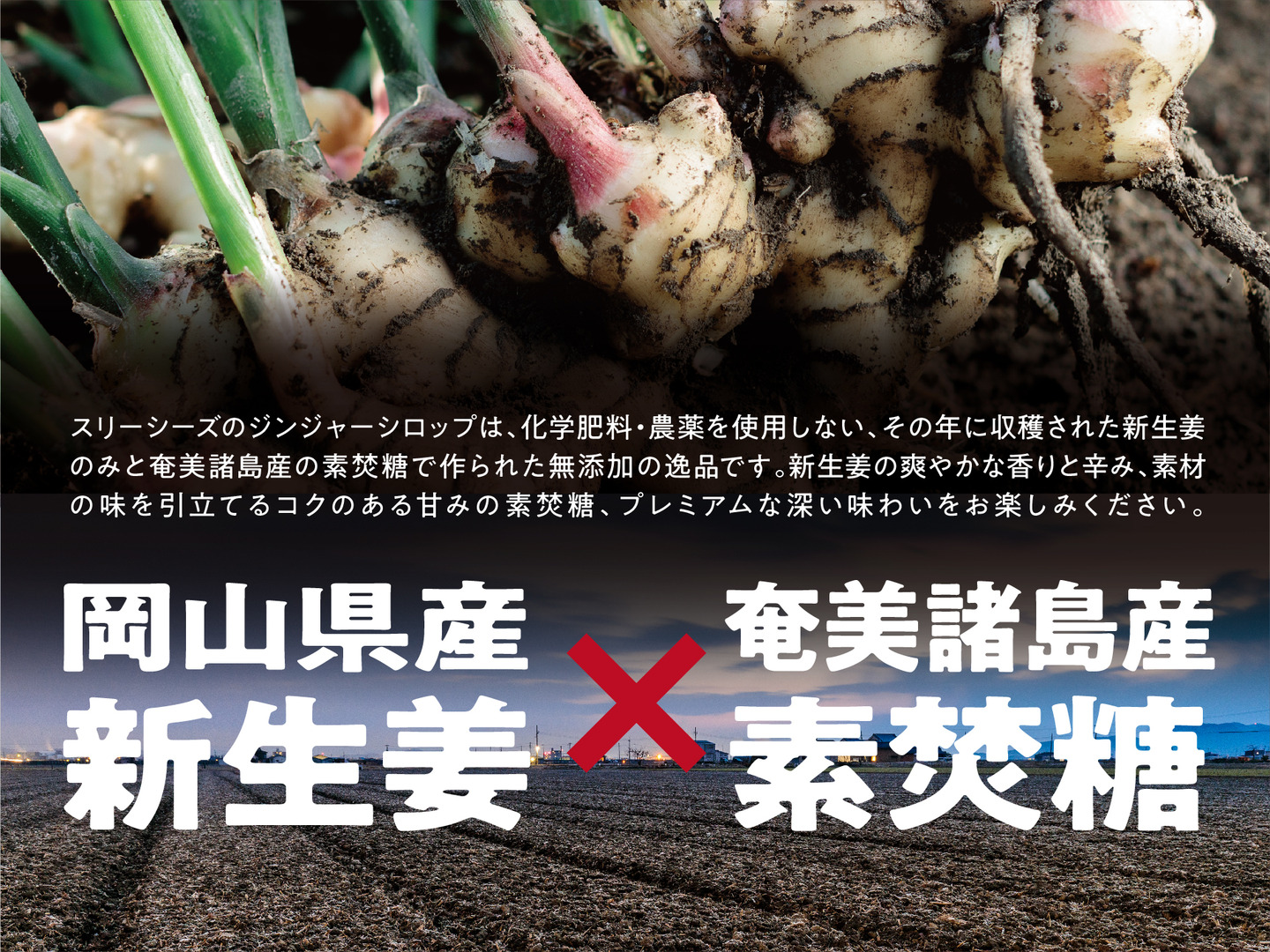 新生姜とは収穫してから2ヶ月程度の生姜を指し、この希少な新生姜のみを使用したシロップは非常に珍しいです!