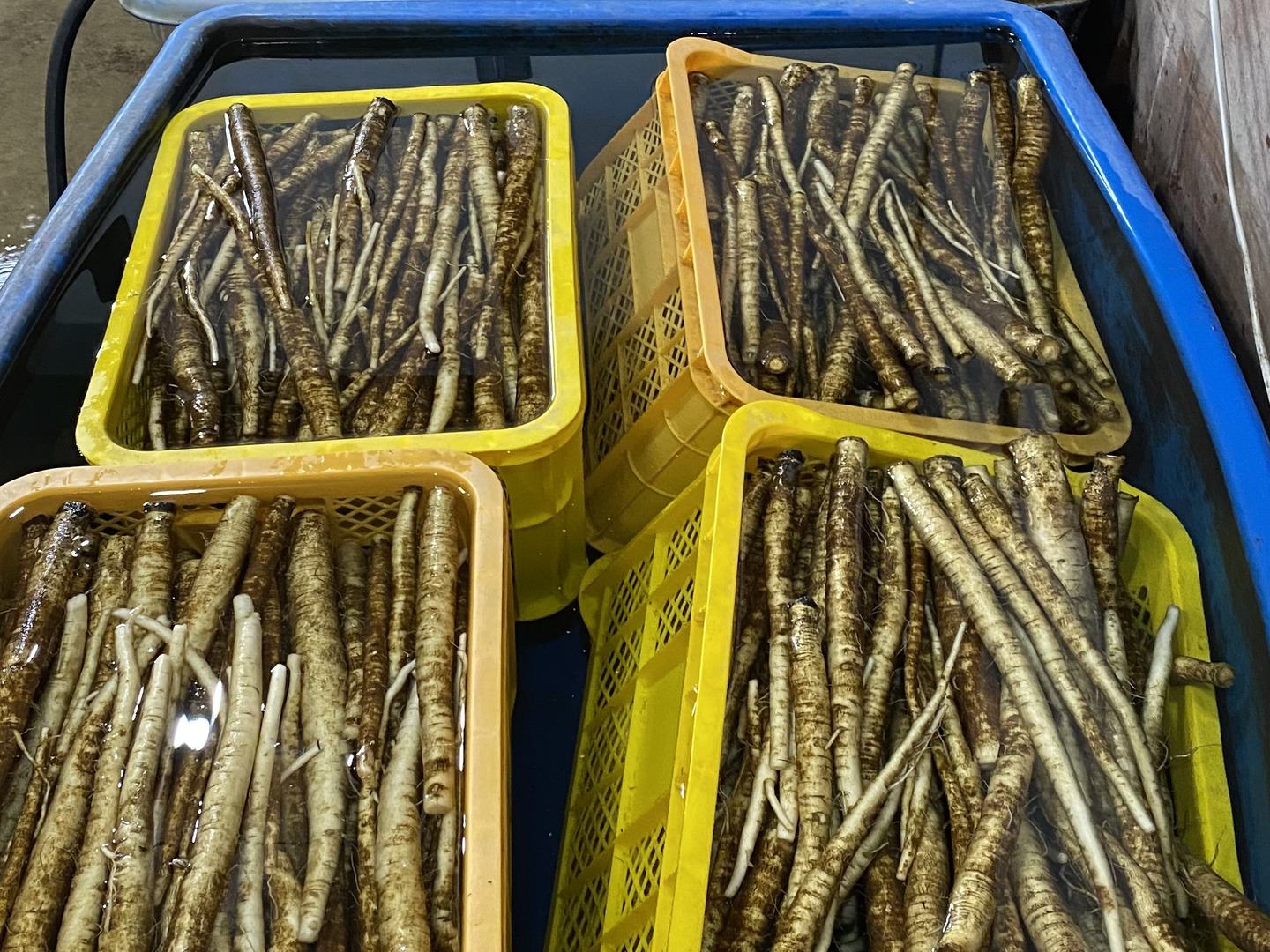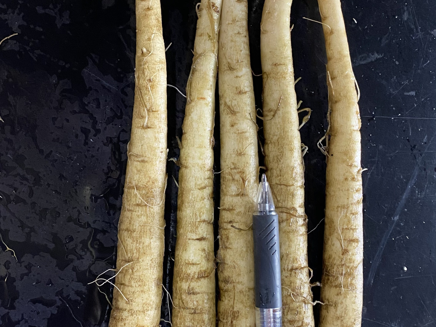 洗いごぼうで1袋1Kg 髭根の処理なし 箱の長さに先端をカット
