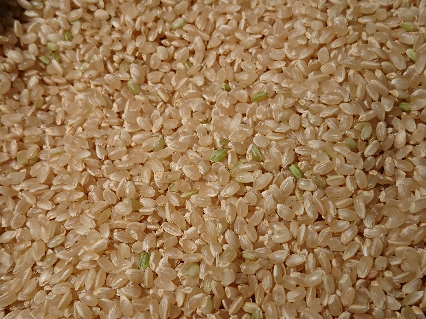 緑色のお米が混ざる玄米は「刈り遅れではない」美味しさの証です。