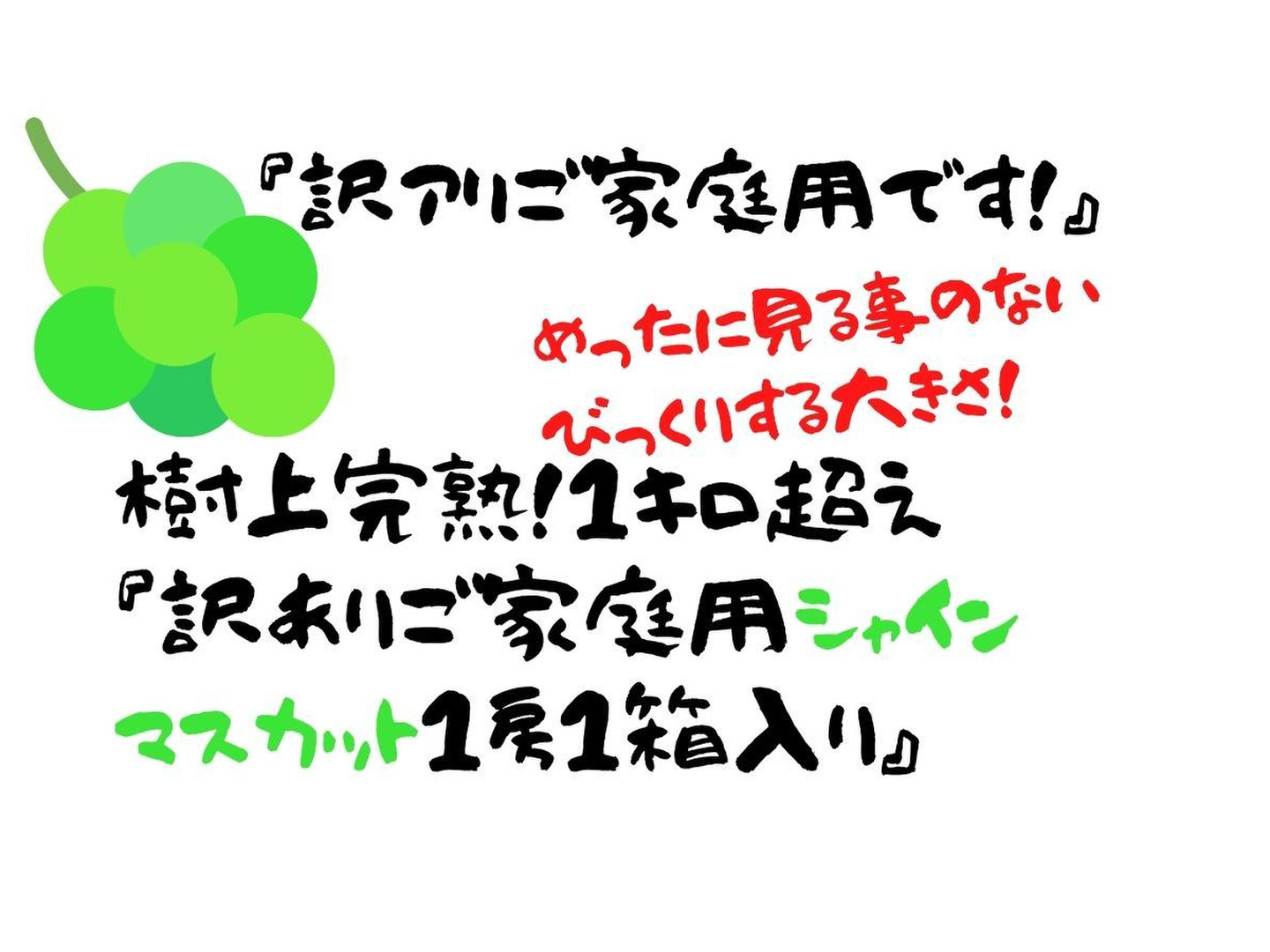「訳ありご家庭用シャインマスカット1房入り」です。