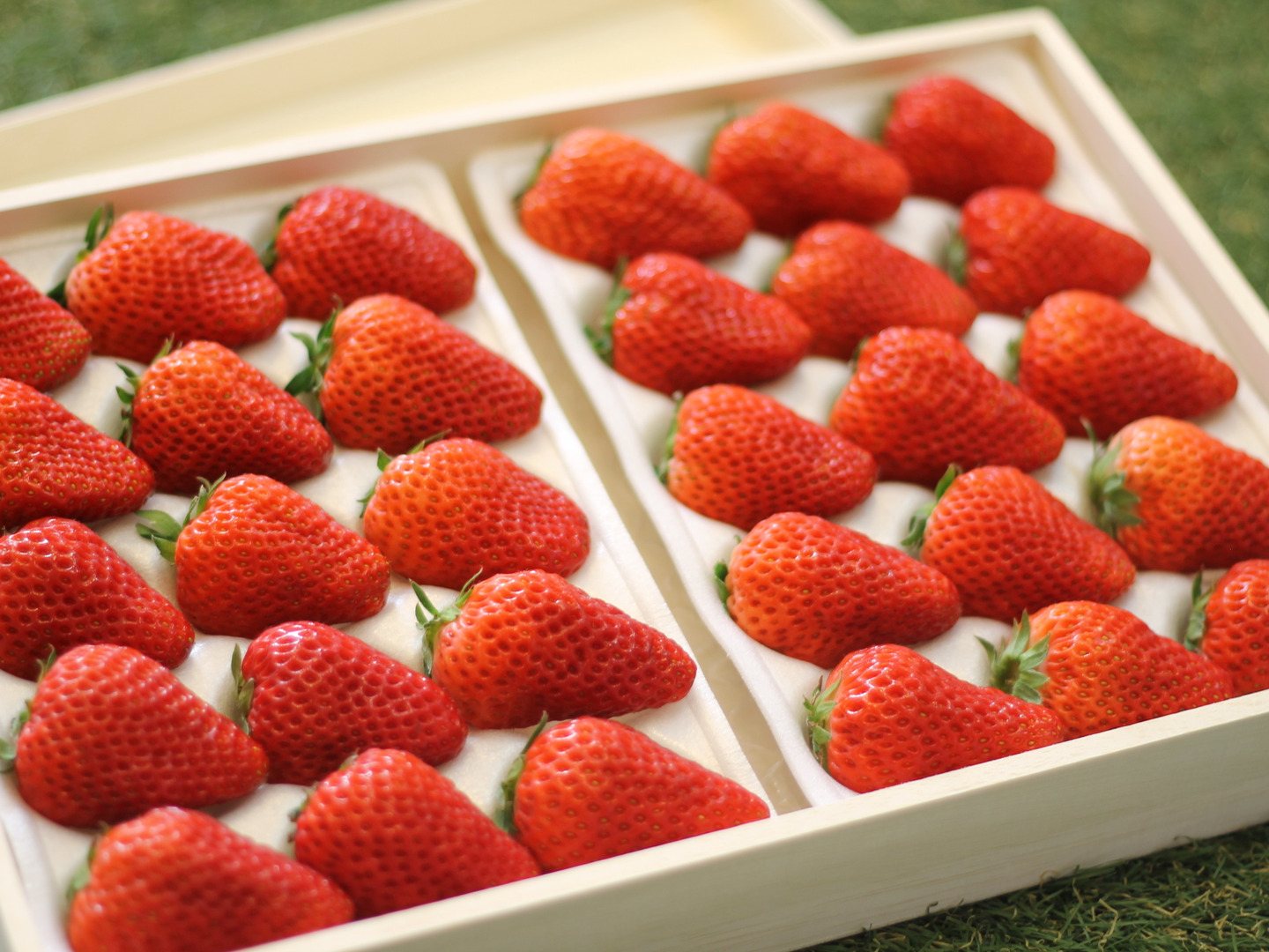今季初採れの完熟 紅ほっぺの木箱入りギフトです。