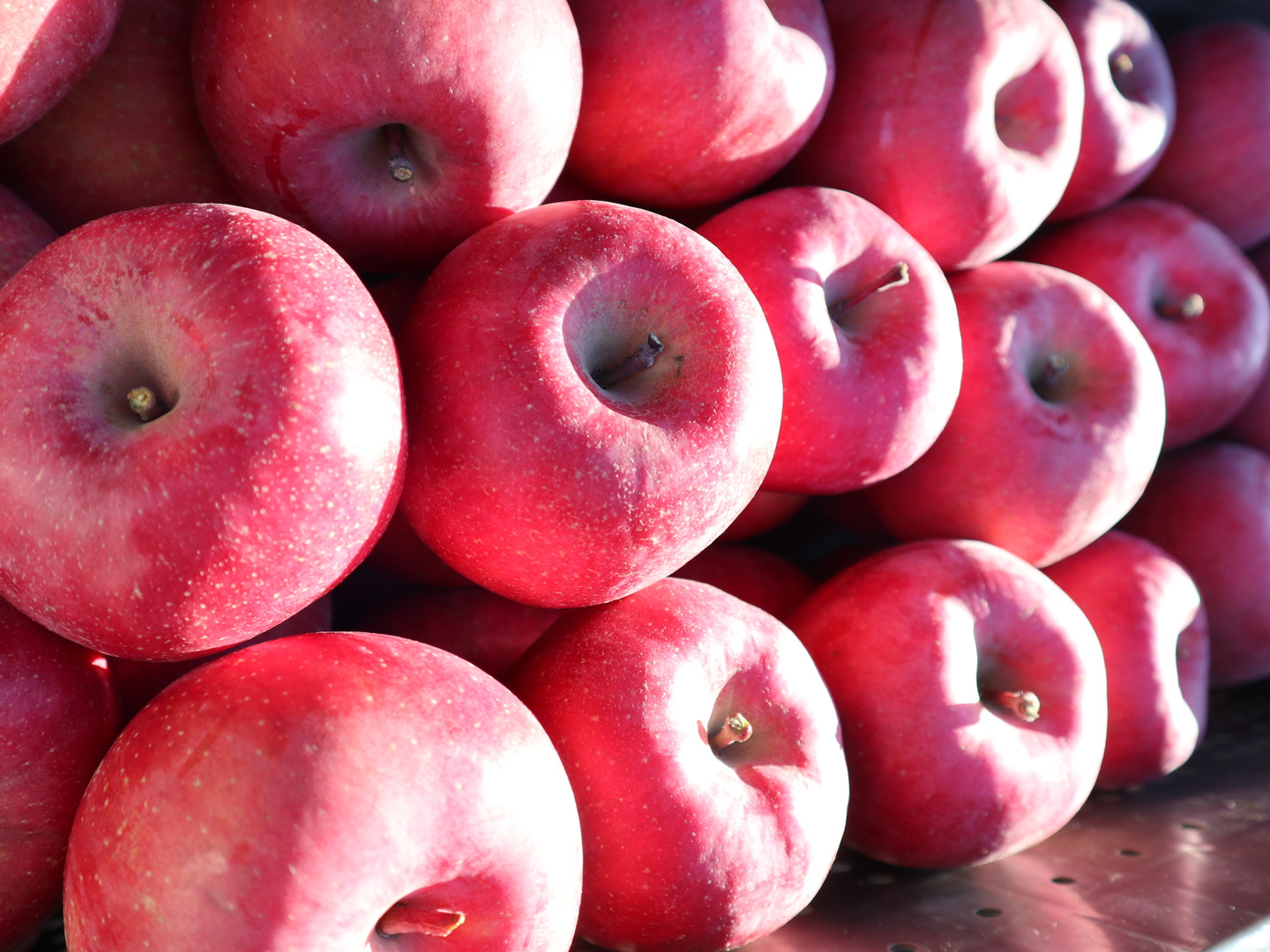サンふじは甘さと酸味のバランスが良く、香りも芳醇でりんごの王様と呼ばれています。果肉もしっかりしていて、しゃっきりとした歯ごたえも魅力のひとつです。また、個体差はありますが、蜜入りが多いのも特徴です。
