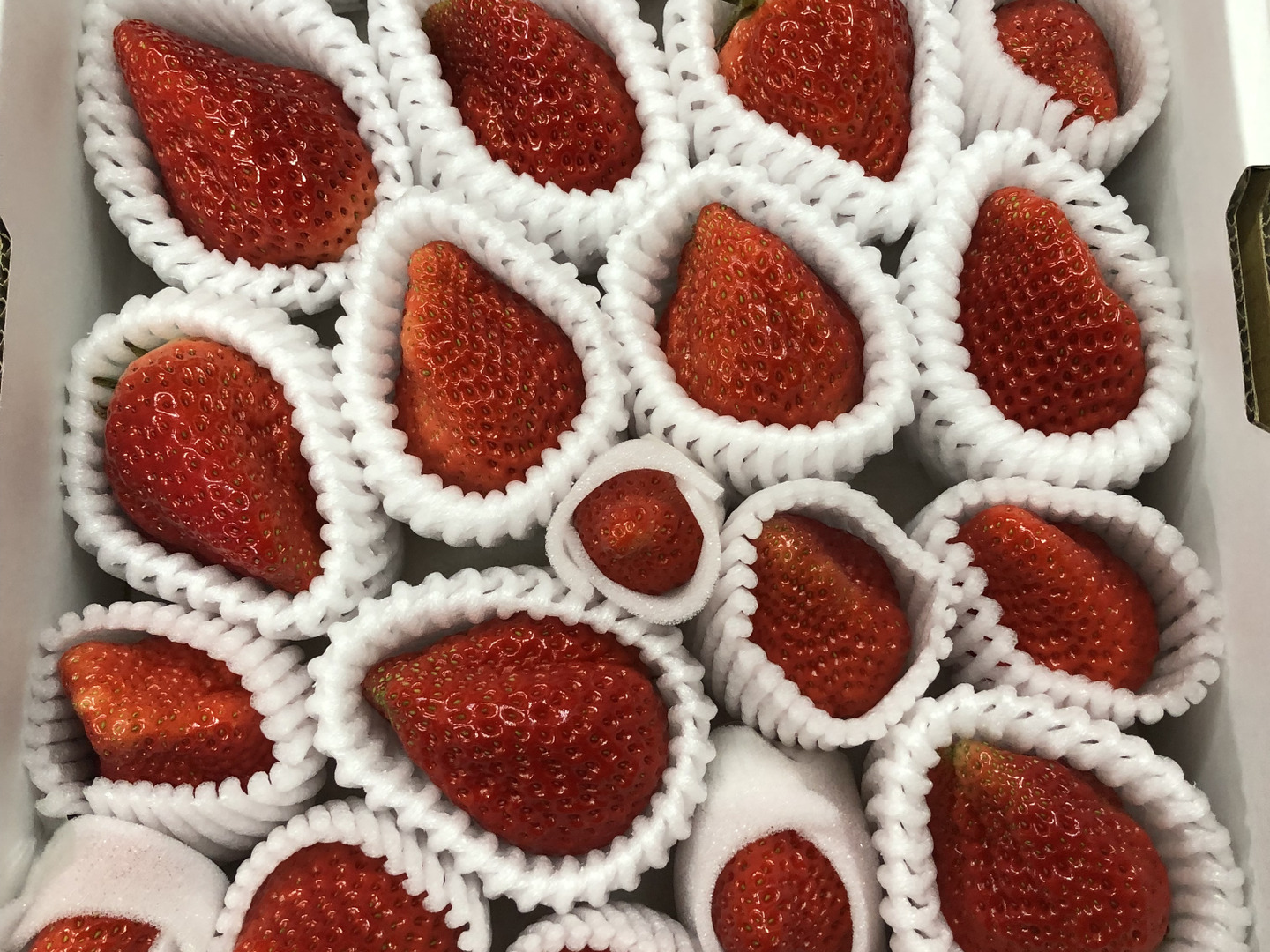 ☆大粒のいちごはデリケートなためフルーツキャップに入れ、小粒のいちごは薄いスポンジを使うなど、輸送時の揺れなどによる傷み対策をいたします。(梱包をしていても、輸送時による揺れや冷蔵車の中での冷えすぎで、お届けまでに傷みが出る可能性がございます。ご了承いただける方にご購入をお願いしたいと思います。)