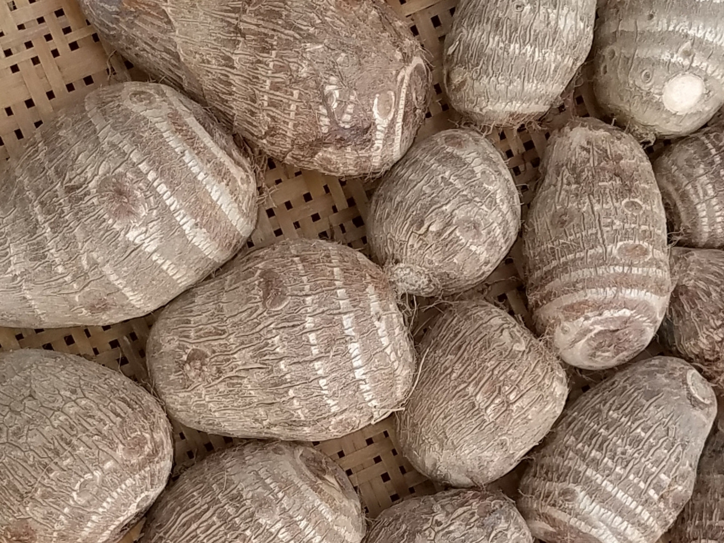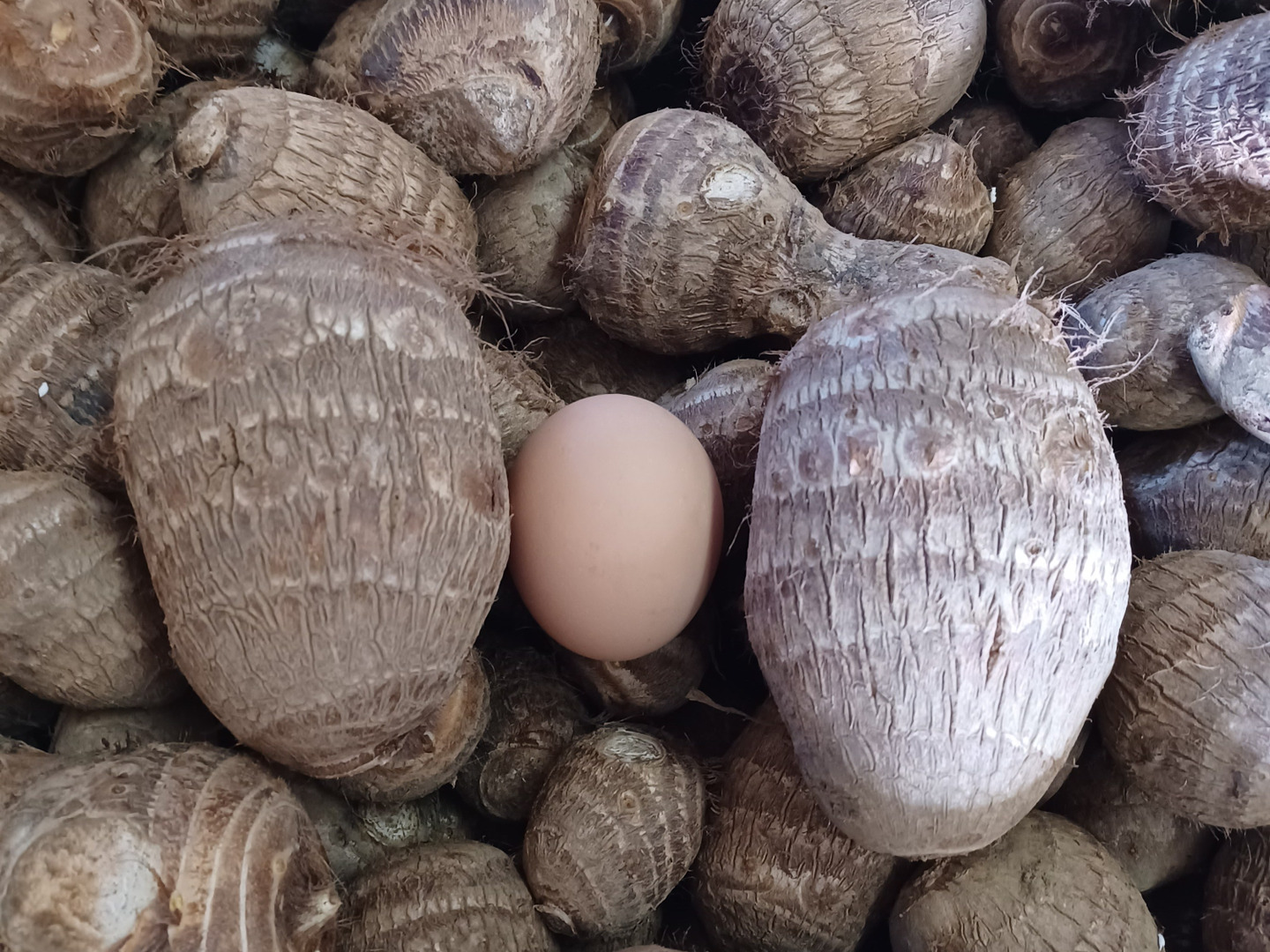 里芋を崩さず土が付いたまま丁寧に手堀で取り出し貯蔵穴で籾殻の中で大事に保存しています。