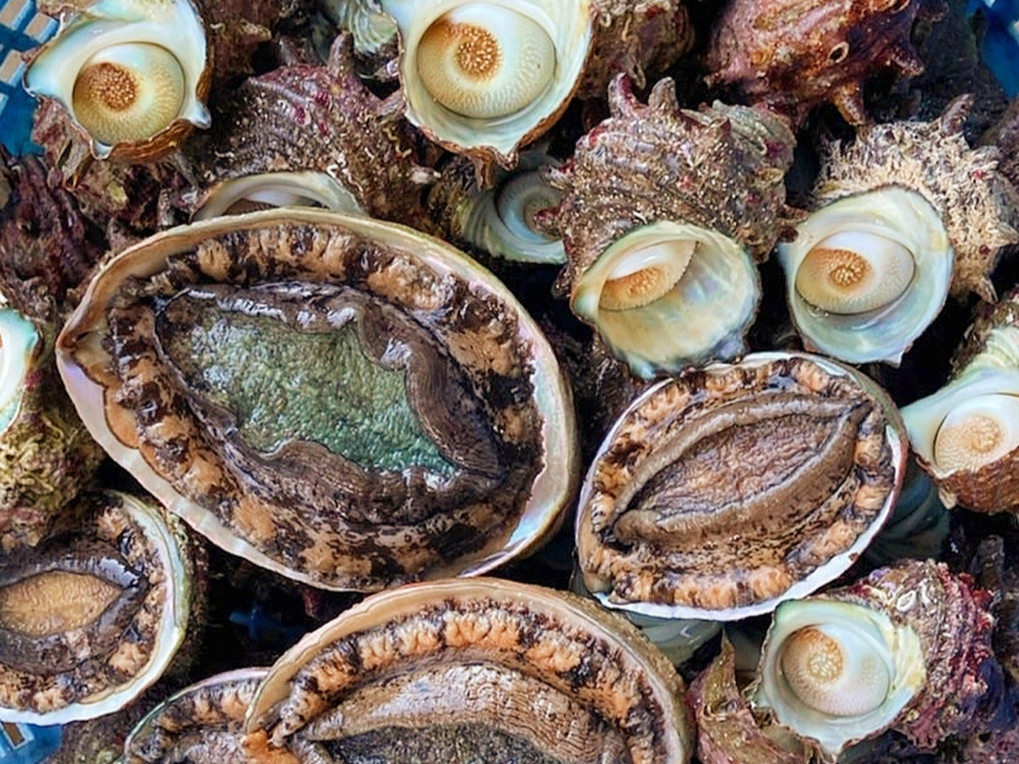 プチ贅沢に!天然アワビ(300g分 2-3個入)とサザエ8個セット!