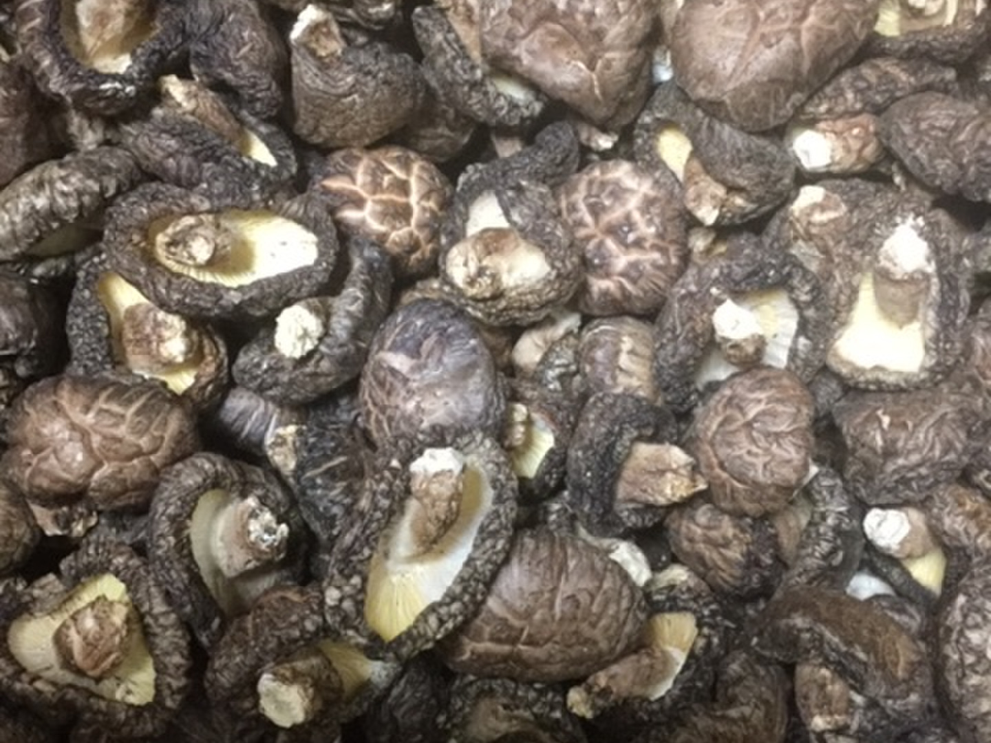 標高600メートルの落葉樹林の下で、じっくりと肉厚に仕上がっています。傘の開き具合によって5,6分開きが「どんこ」、7,8分開きが「香信」です。「徳用」どんこや香信は少し形の悪いものなどです。9分以上開いたものや形やヒダの色が悪いもの、傘が欠けているものなどは「訳あり」として商品表示しています。