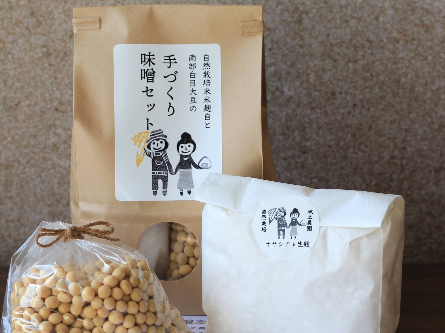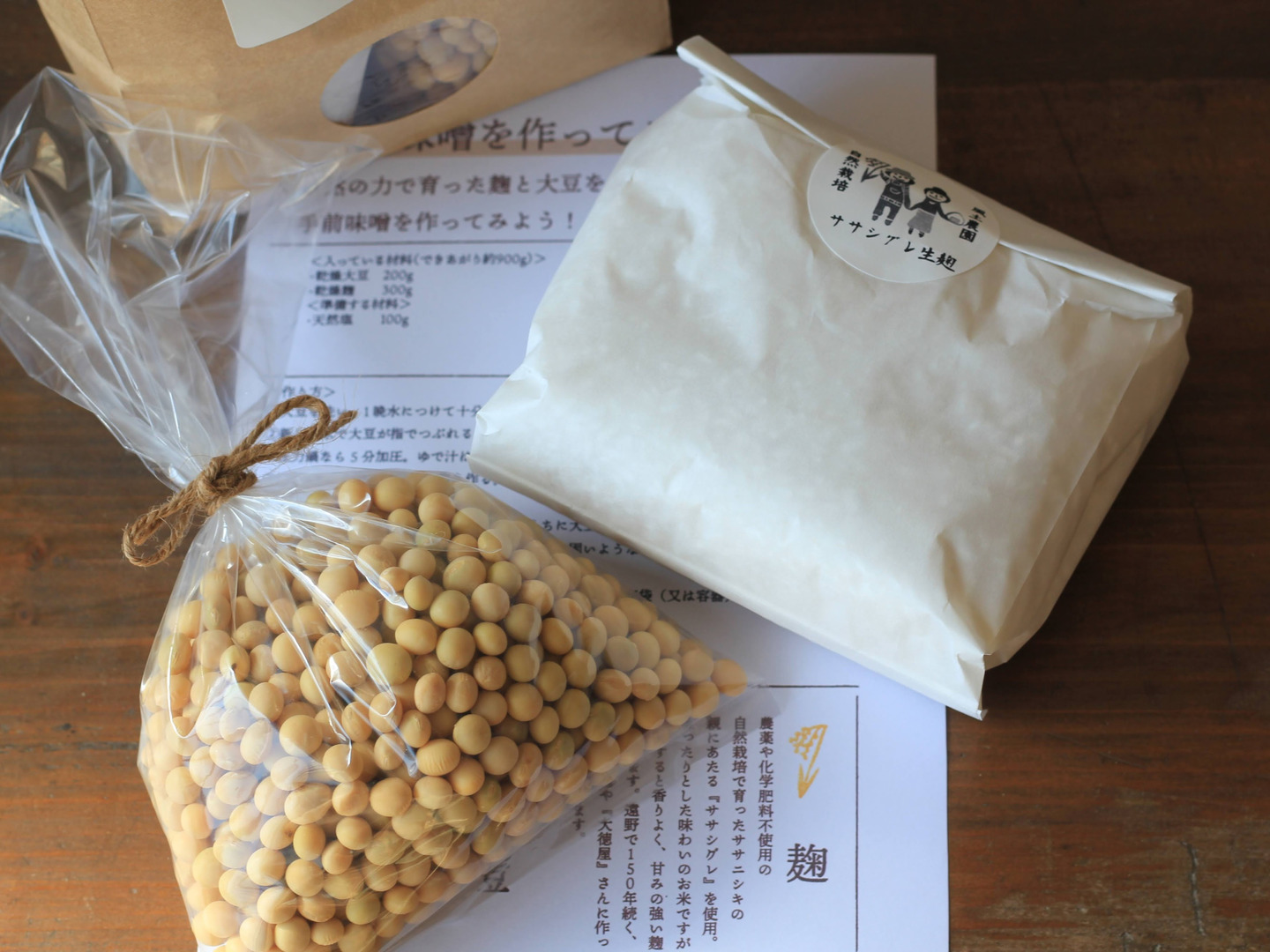 計量済みの大豆200gと生麹300gがセットになっていて、