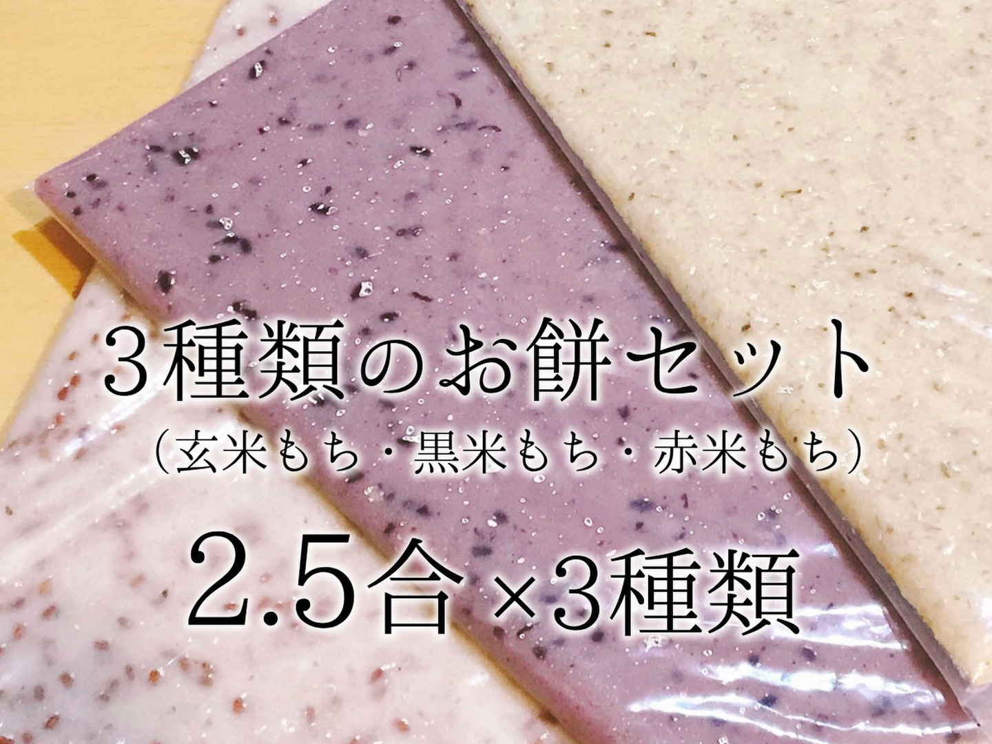 《年末予約》のし餅2.5合3種類セット【天日干し・無肥料・栽培期間中農薬不使用のお米】