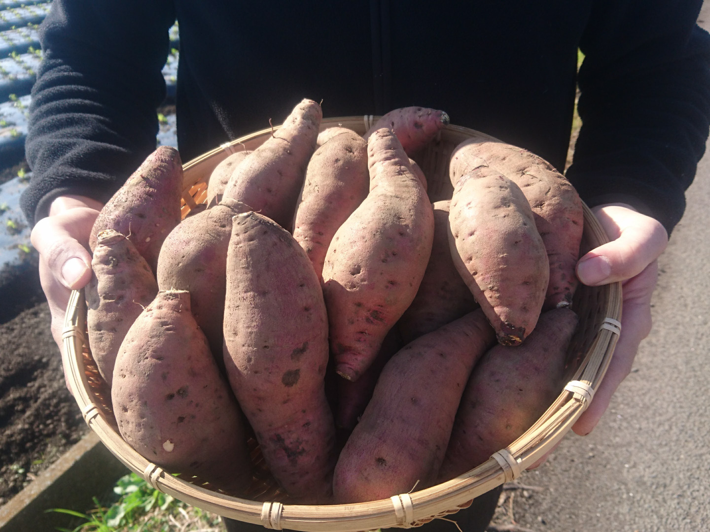 鹿児島県薩摩半島の最南端の開聞岳の麓で作った紅はるか。ここは琉球からサツマイモを持ち込んだ前田利右衛門の故郷でもあります。火山灰土質で小指の爪サイズの礫が多く、水はけの良い畑で栽培しています。焼き芋、甘露煮、天ぷらなどで、凝縮した甘みをお楽しみ下さい!