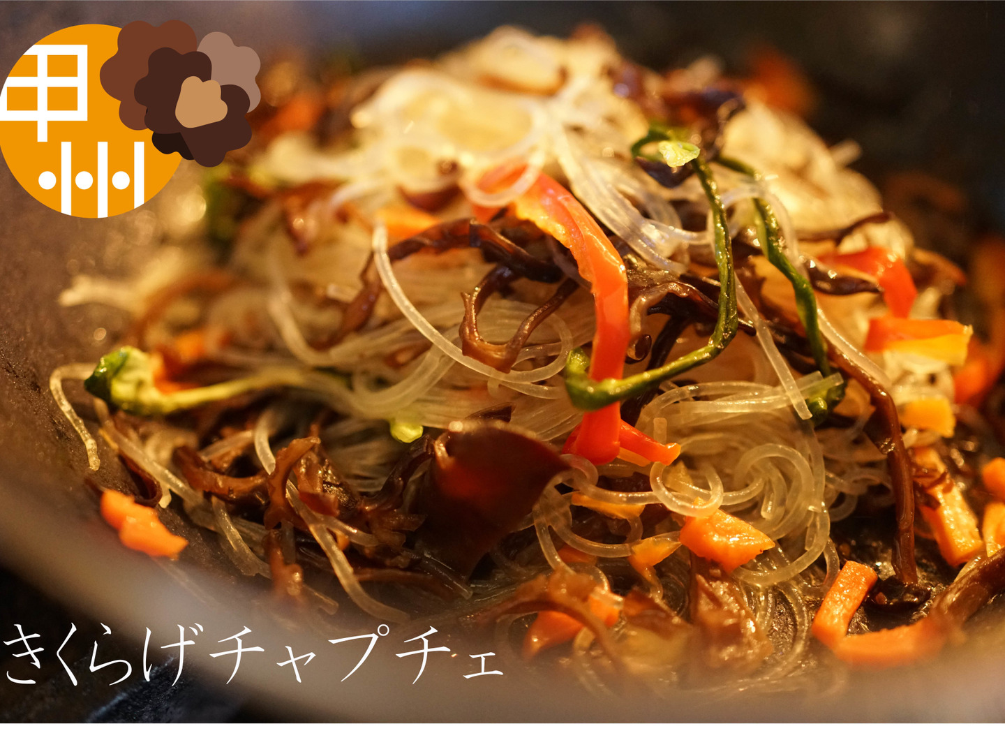 たっぷりの千切りきくらげと、春雨、ピーマン、パプリカ、ニンジンと調味だしがそろっているから簡単につくれちゃうチャプチェキットです。