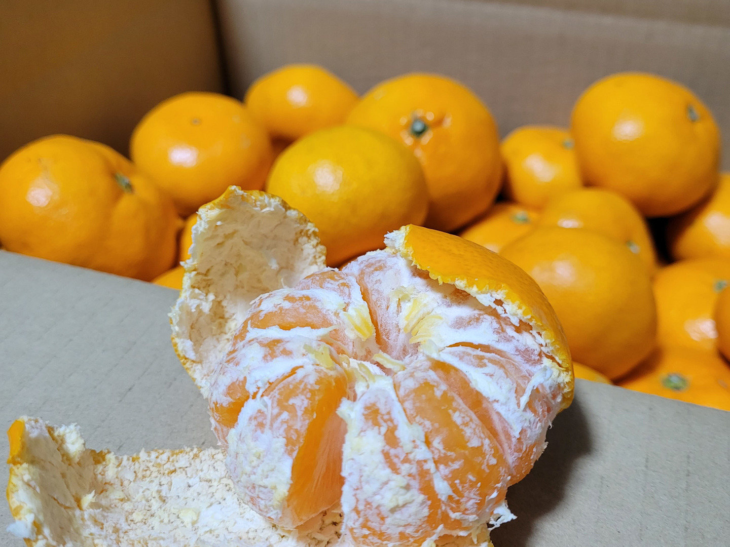 皮は比較的薄めで、剥けば途端に拡がる早生とも異なるミカンの香り♪