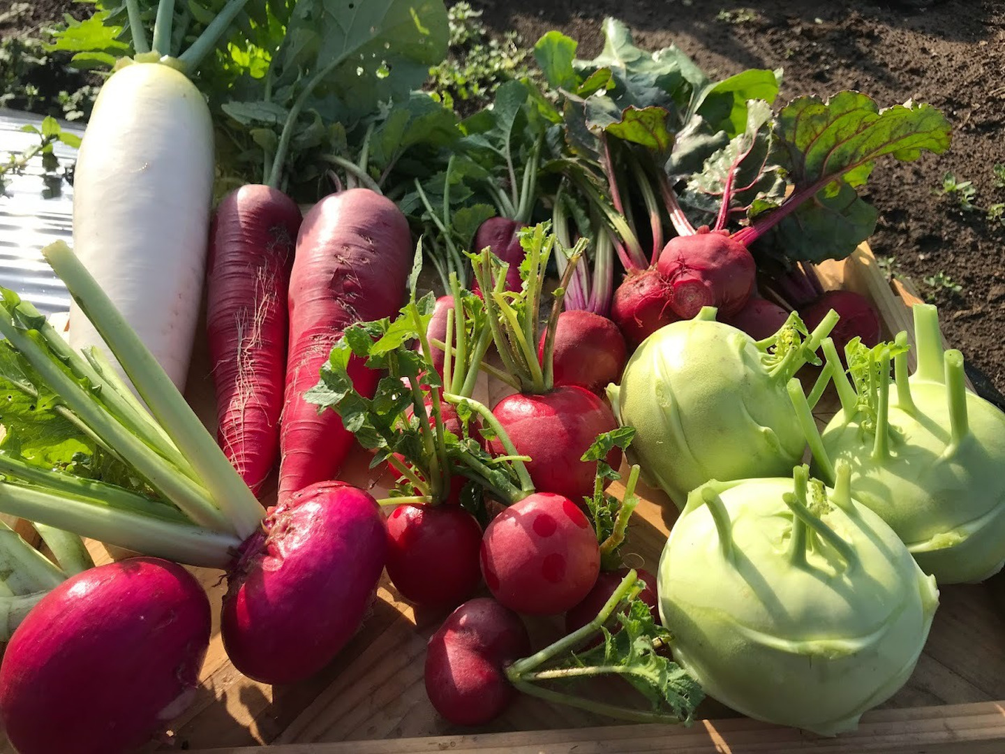 今回は食べる輸血と言われるスーパーフードのビーツや、アントシアニンたっぷりの赤大根、ラディッシュ、赤かぶ、おでんに最適のおでん大根、そしてサラダにしても煮物やソテーにしてもとっても美味しいコールラビをセットにしました。