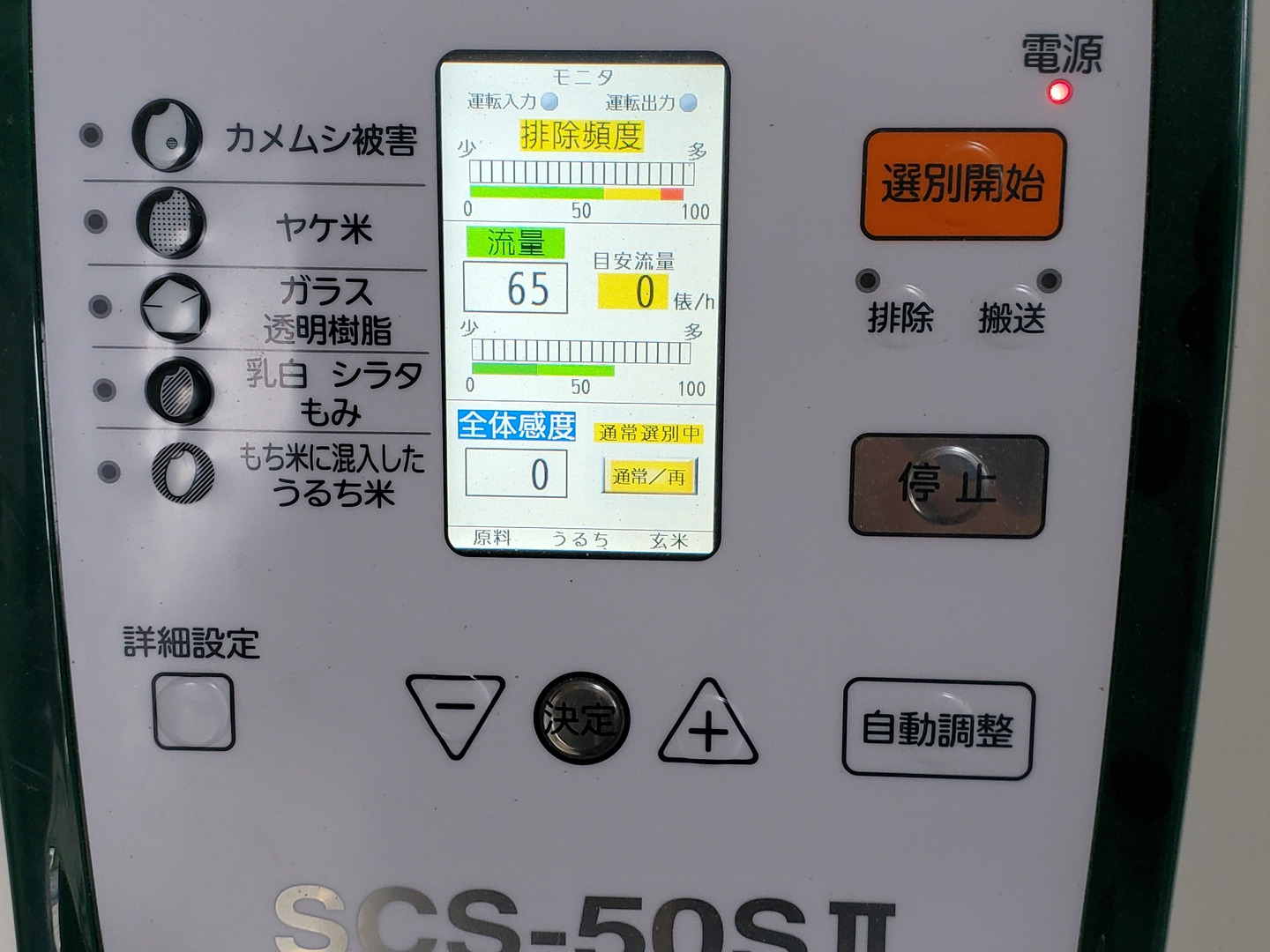 玄米調整作業では、色彩選別機を使用し異物混入を無くしております。