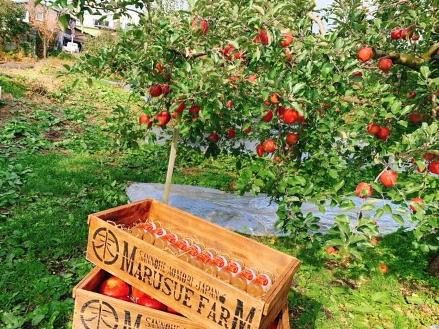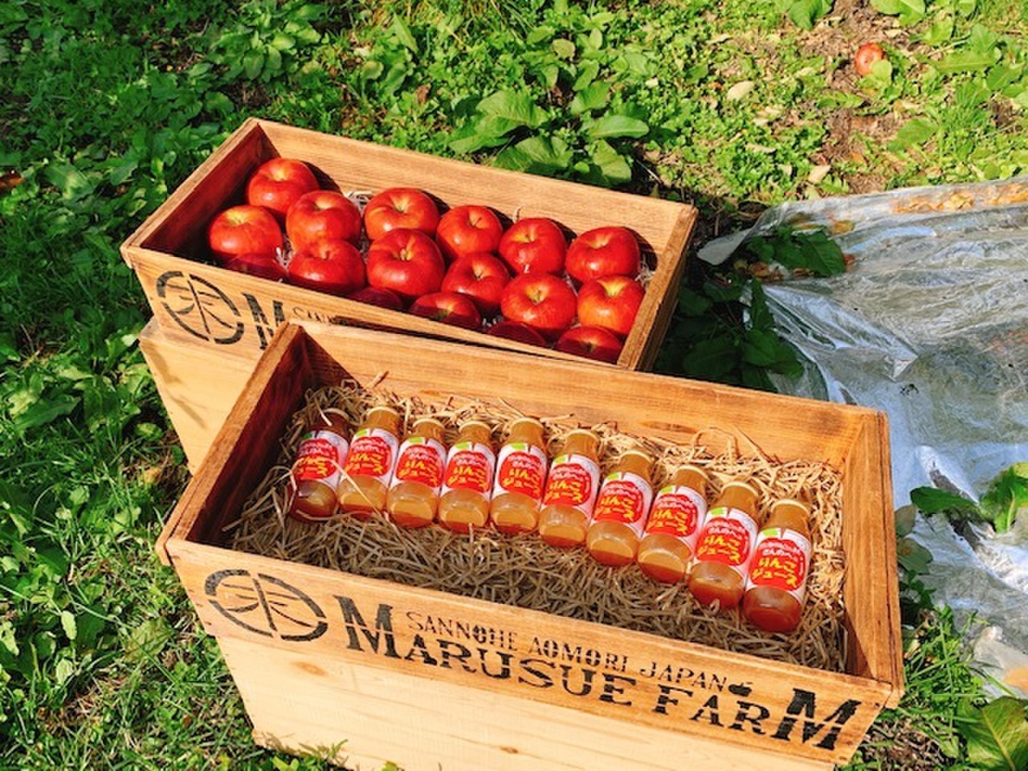 青森県三戸町の丸末果樹農園がこだわりの有機肥料を贅沢に使い育てた赤色種と黄色種のりんごを組み合わせたりんごジュースです。