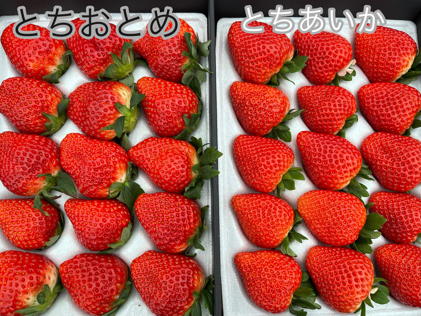 とちおとめ15粒、とちあいか15粒入りの贅沢なBOX🍓